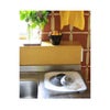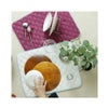 パイピングのカラーがアクセントになり、広げたままでもキッチンが華やかに。実用性とデザイン性を兼ね備えた一枚です。