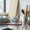 折りたたんだり丸めて収納できるので、水切りカゴのように場所を取らず、キッチンもすっきり。必要な時にサッと広げられる“ちょうどいいサイズ感”です。