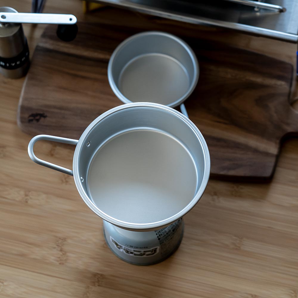 取っ手付きなので、シェラカップ感覚でマルチに使えるアルミカップです。