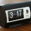 パタパタと切り替わるユニークなフリップ式表示板と、どこかレトロなデザインが特徴的な置き時計。