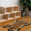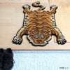 様々なデザインがあるタイガーラグの中から、アイコニックなタイプを元にインドにて手作業で作られています。厚み1.8cmとしっかりした作りで、へたりにくく、保温性、調湿性に優れ、汚れがつきにくいラグに適した素材のウールを使用。
