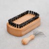 ウールのニットやコートなど、デリケートな冬物衣類のお手入れに最適な、きめ細やかな馬毛を使用した洋服ブラシ。