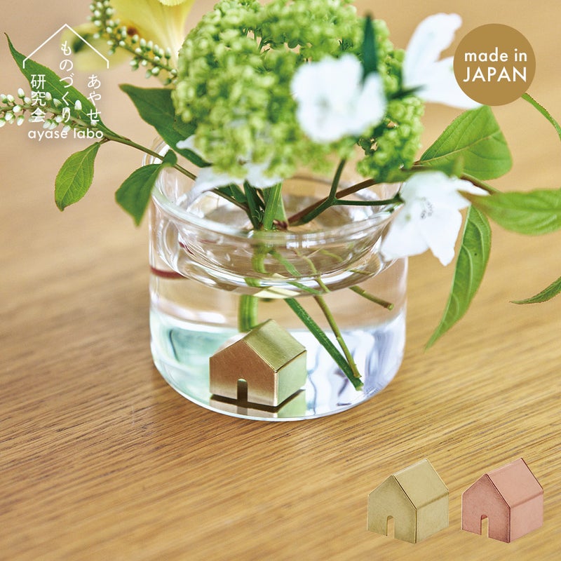 真鍮(銅)の抗菌特性を活かし、水の腐敗を抑えながら空間にやさしく馴染む小さなおうちのかたち。