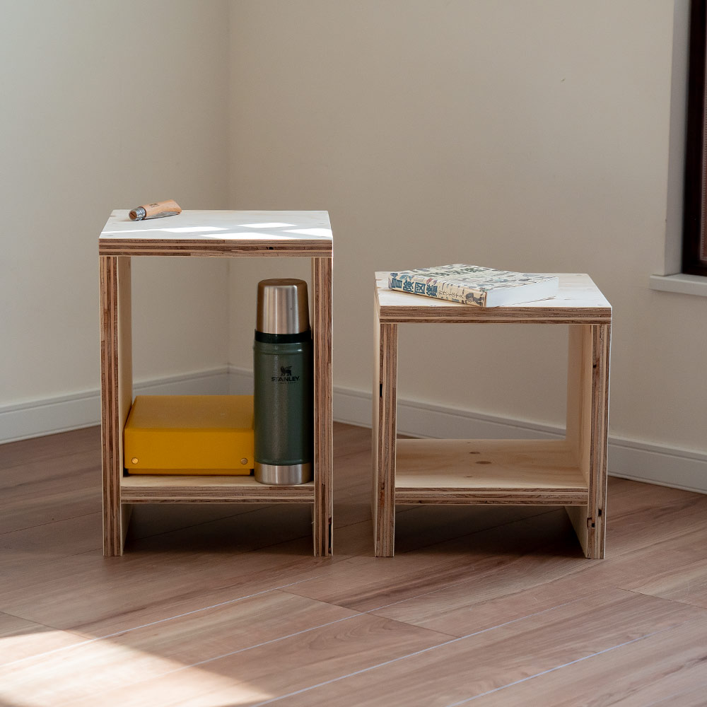 スツール以外にもバッグや小物などの一時置き、寝室のサイドテーブとして。