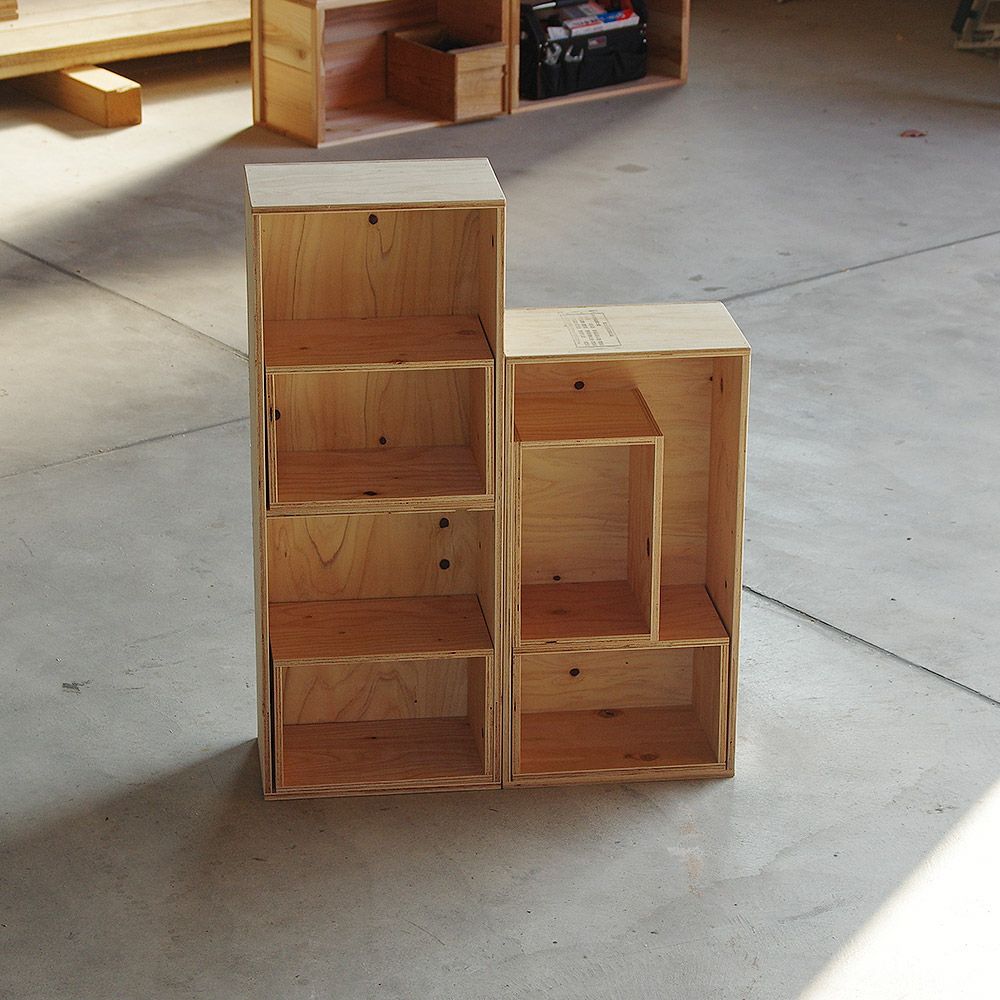 収納が欲しい場所に応じて、タテ・ヨコ自由にレイアウトできるシェルフボックス。リビングや寝室、書斎に玄関…ラフな木の質感で家中どこでもお使いいただけます。