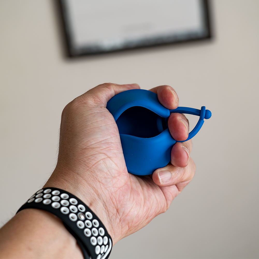 手のひらサイズのシンプルなシリコン製コインケース。 真ん中に切れ込みが入っているので、左右から押して開くと簡単にコインが取り出せます。 同素材のループ付きで、汚れが気になれば洗えます。