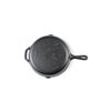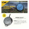 12インチ(内径29.9cm)で、アメリカでも人気のサイズです。大家族のステーキを一気に焼いたり、煮込み料理にもお勧めです。ハンドル(柄の部分)の反対側にアシストハンドルがあり、両手で持ち上げることができ扱いやすいデザインです。スキレット全体が5mmの厚みで、鉄の蓄熱力を上げ、焼く、蒸す、炒める、煮るなど全ての調理法に適しています。スキレットの調理はスキレットカバー(別売りの蓋)があるとより調理の幅を広げ、性能を発揮します。