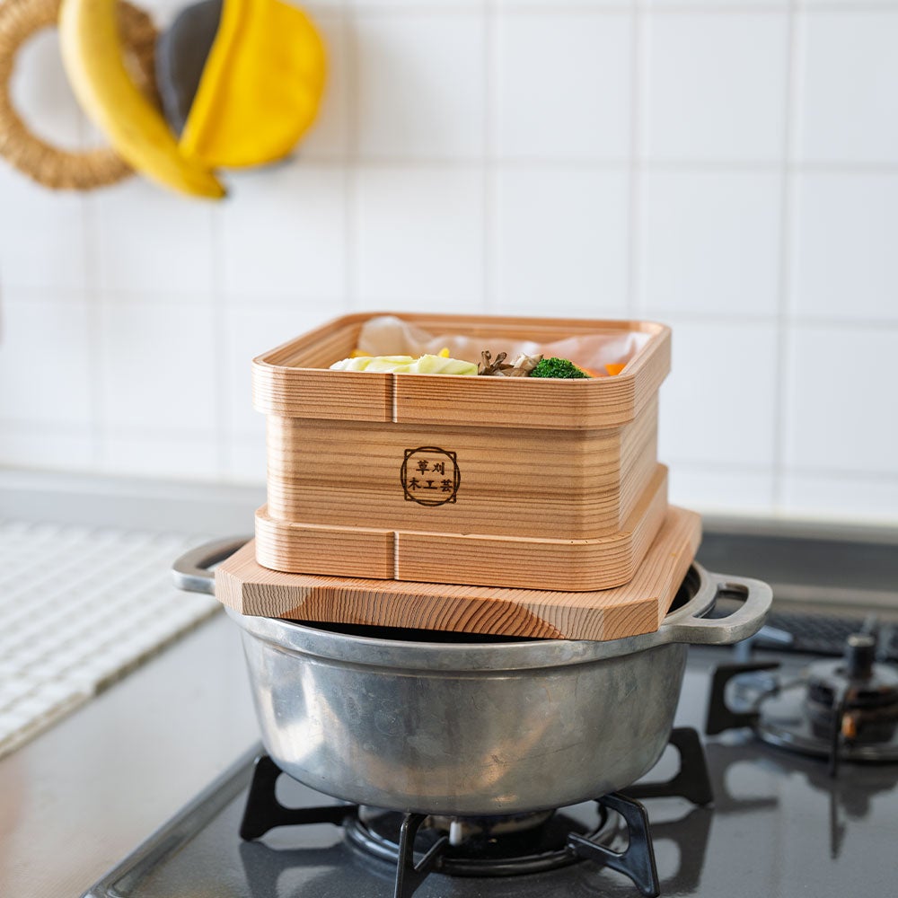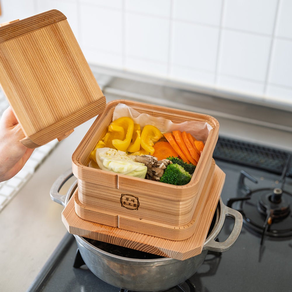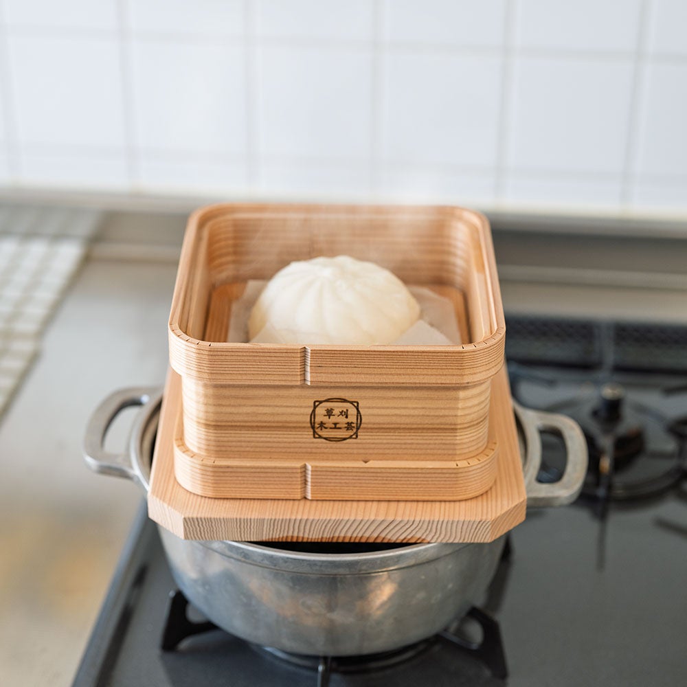 職人のこだわりが詰まった、角まで使える四角型のせいろ