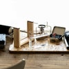 フレーム上部についている回転留め具でアクリルケースの落下を防げます。重さは約250g。Bagに入れて持ち歩けるサイズです。