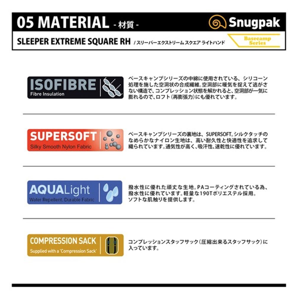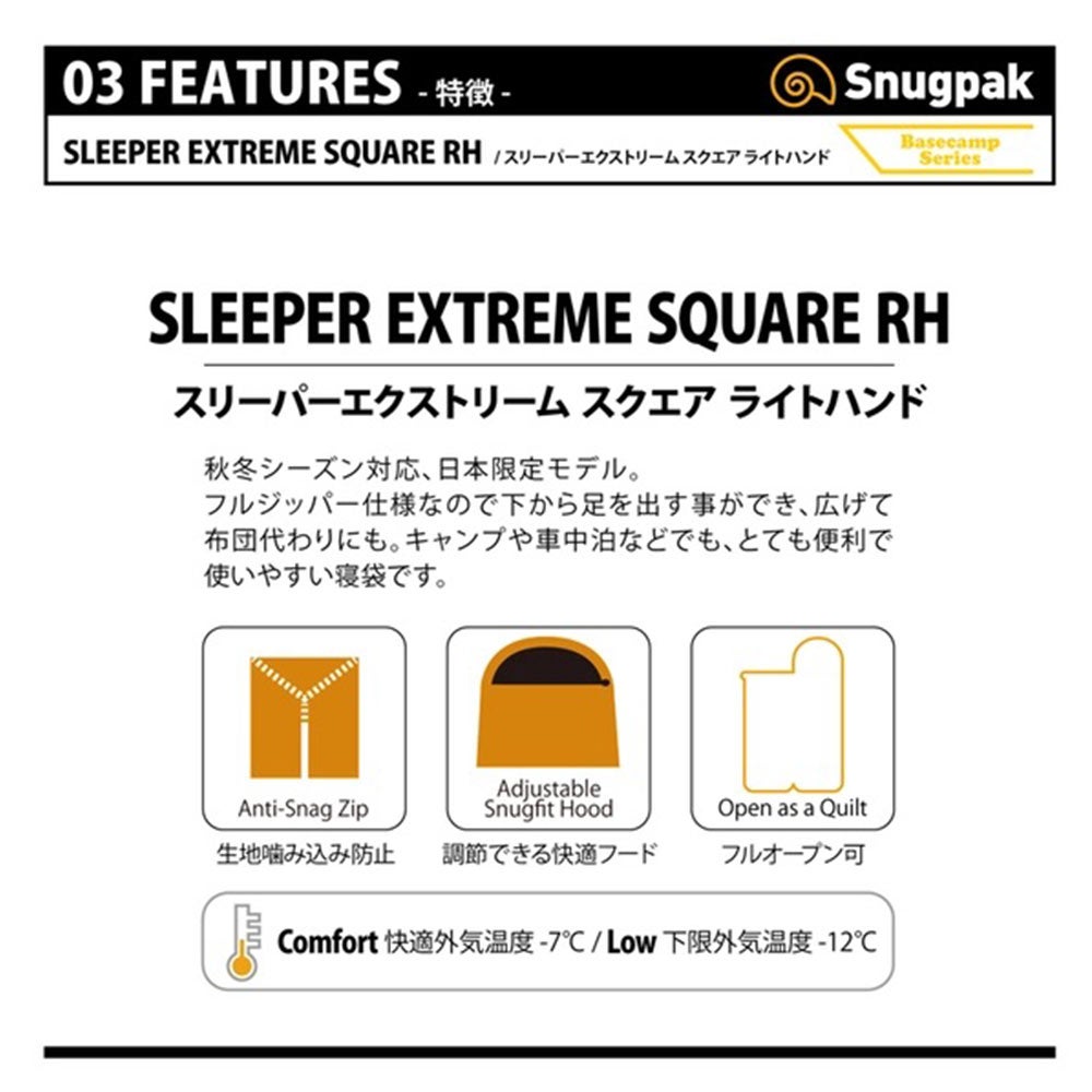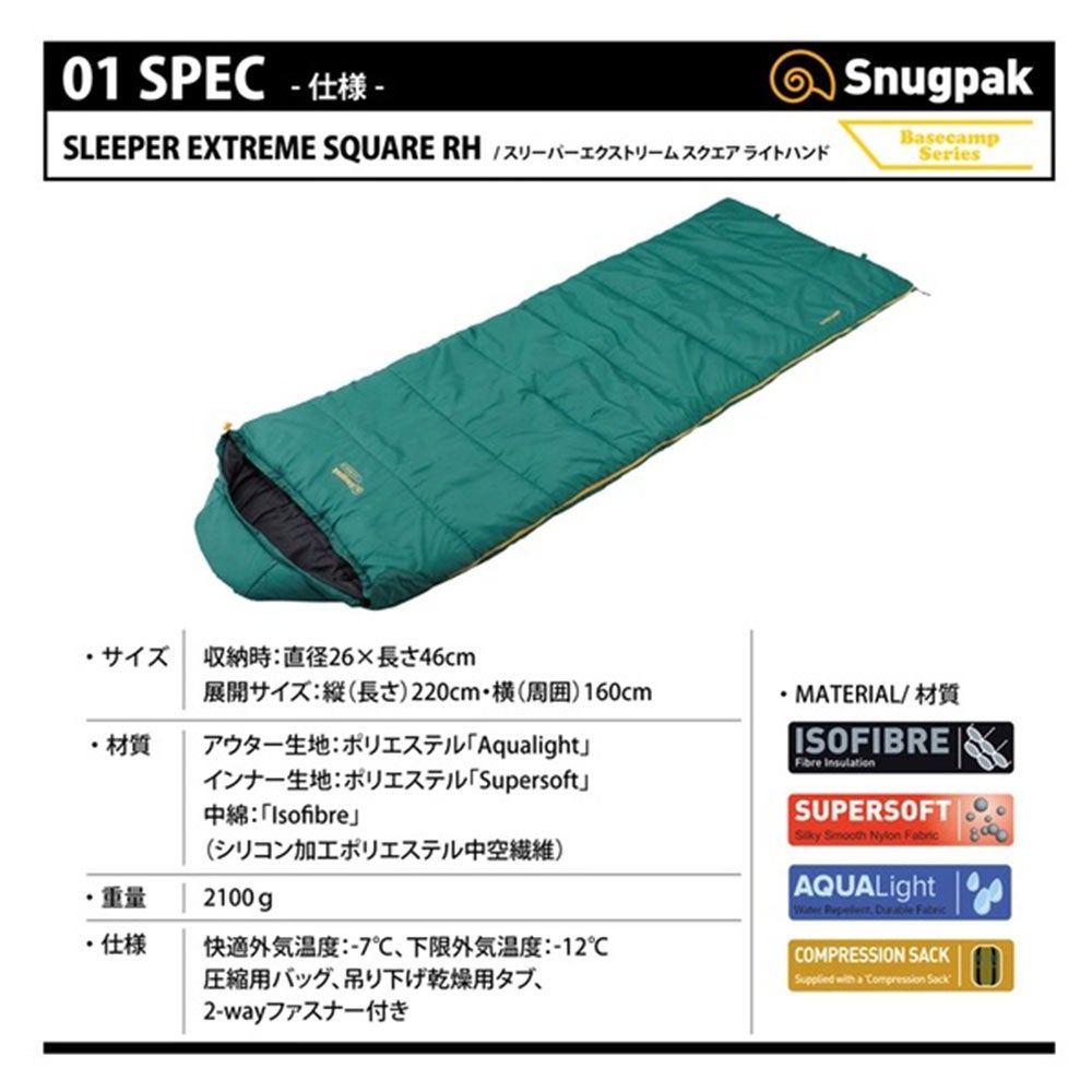他の画像を見る 秋冬のシーズンに対応した日本限定モデル 快適使用温度-7度 Snugpak|スリーパーエクストリームスクエアRZ SP50320DGR 販売価格 ¥ 11,000 税込 カートに入れる お気に入りに登録する