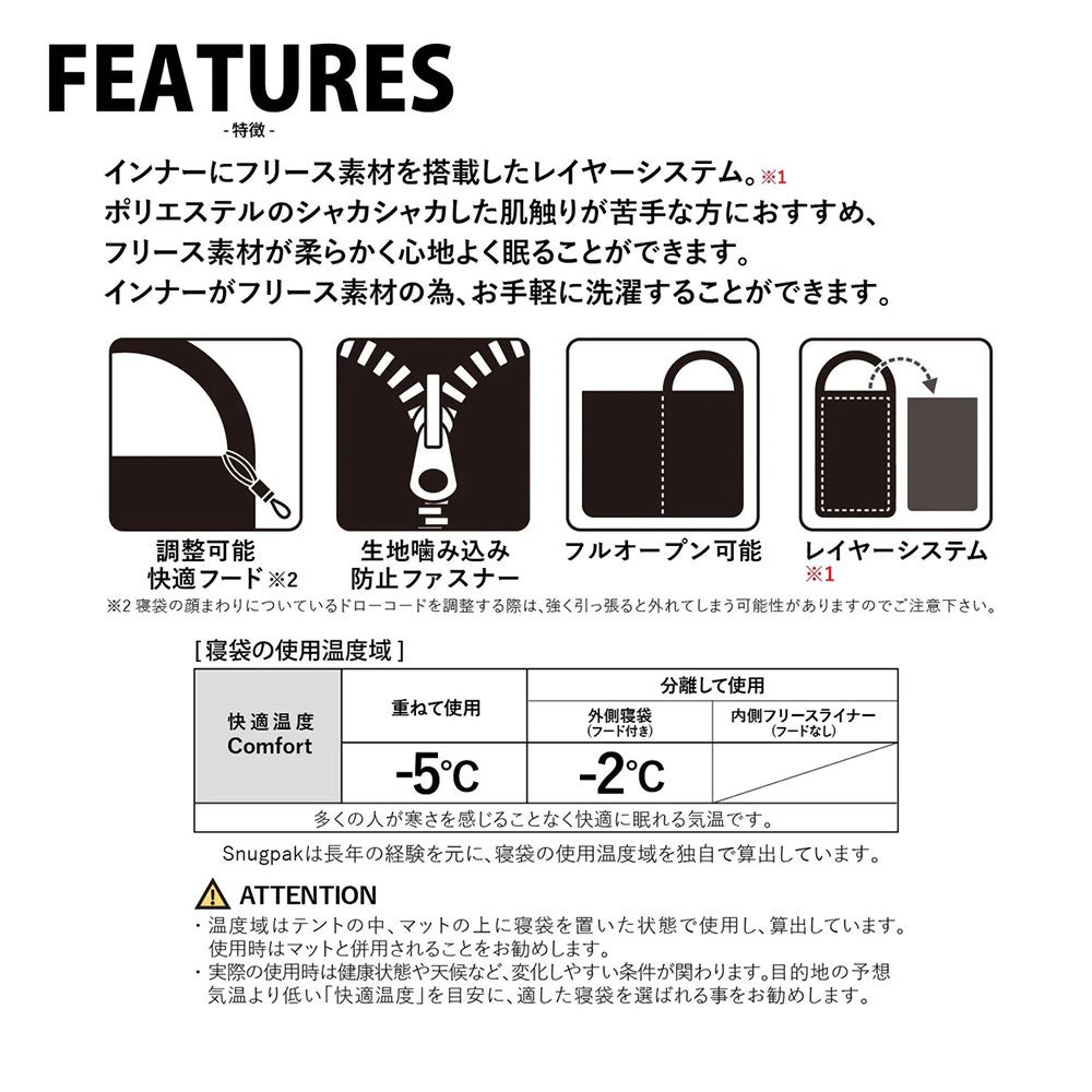 他の画像を見る 秋冬のシーズンに対応した日本限定モデル 快適使用温度-12度 Snugpak|スリーパーエクスペディション スクエアライトジップ SP95204 販売価格 ¥ 13,750 税込 カートに入れる お気に入りに登録する