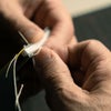 アクセントとなる箔の極細ラインには純金・純銀の糸を使用。