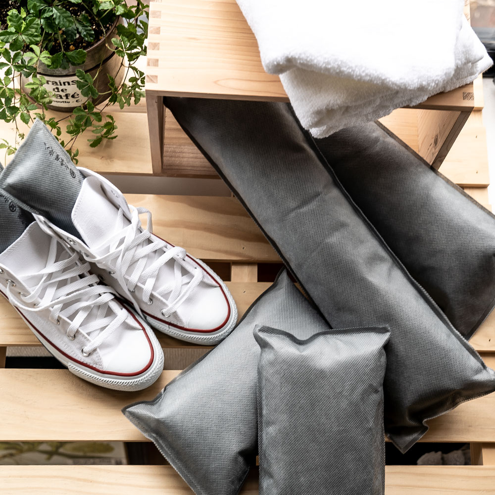 使い捨ての除湿剤のようにこまめに取り替える必要もなく、環境にも優しい炭の調湿剤。