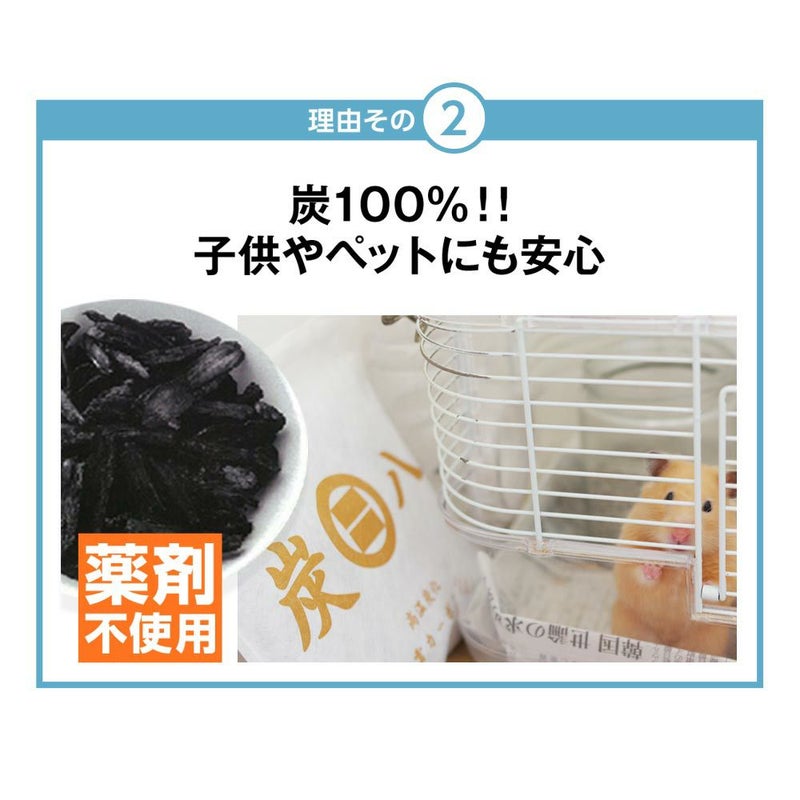 薬剤不使用の炭100%で、ペットやお子様がいる家庭でも安心してお使いいただけます。