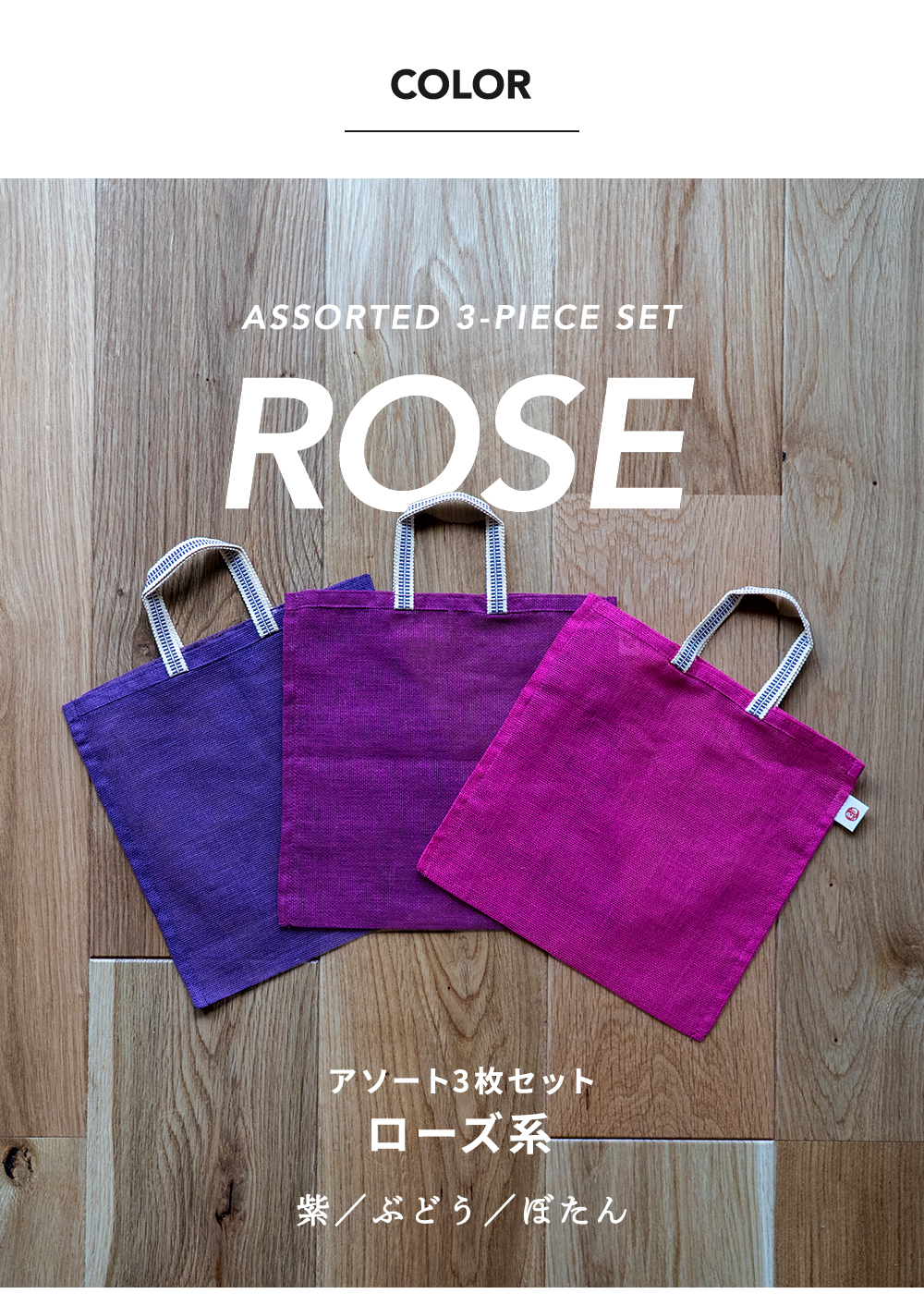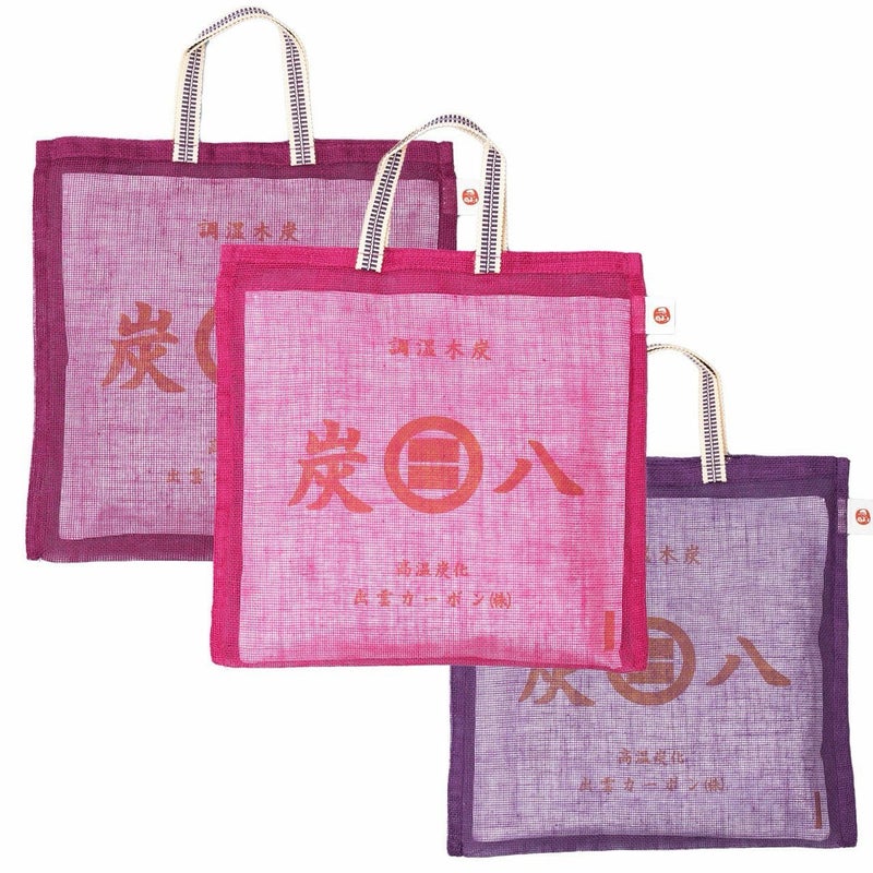 炭八:ベージュ3袋セット、かや袋:ローズ系アソート3枚セット