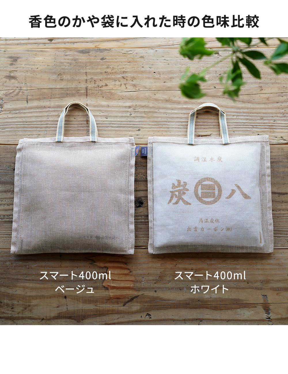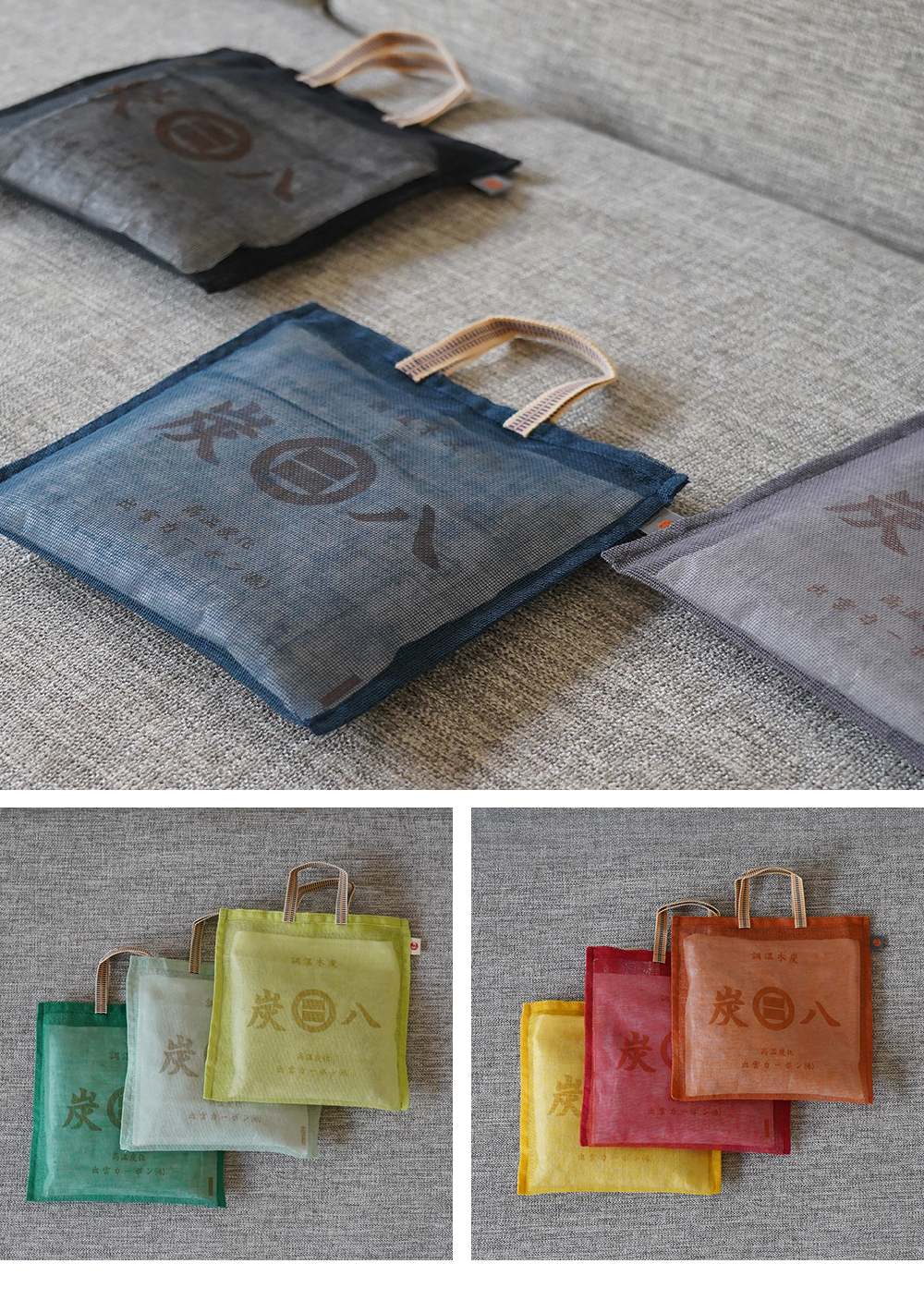 住まいの調湿・消臭に特化した「炭八」と、当店限定かや袋セット
