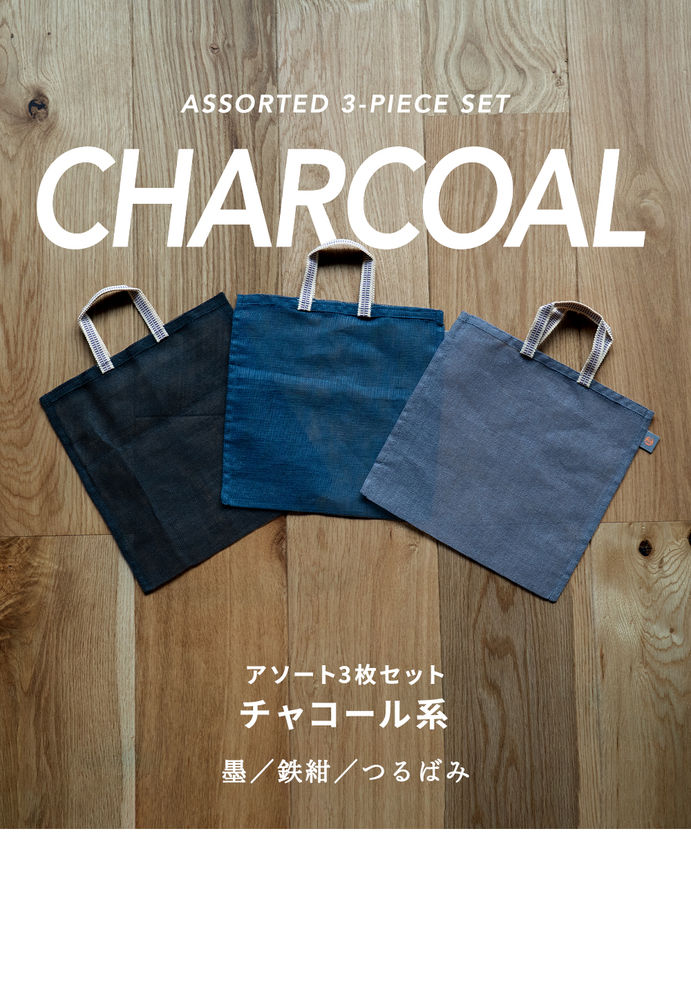 炭八:ホワイト3袋セット、かや袋:チャコール系アソート3枚セット