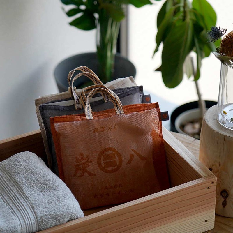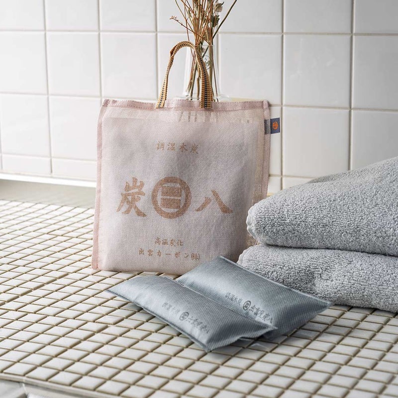 炭八は、湿気やにおいを吸着する炭の調湿材。空気がジメジメすると吸湿し、乾くと放湿することで、快適な状態へと整えます。