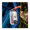 サーモコンポは超小型のコンパスと温度計がセットされたキーホルダーです。ジャケットやバックパックのジッパーに取り付けておくと意外な時に役立ちます。華氏(°F)と摂氏(℃)で表記されているので、どこの国でも温度を共通認識できます。