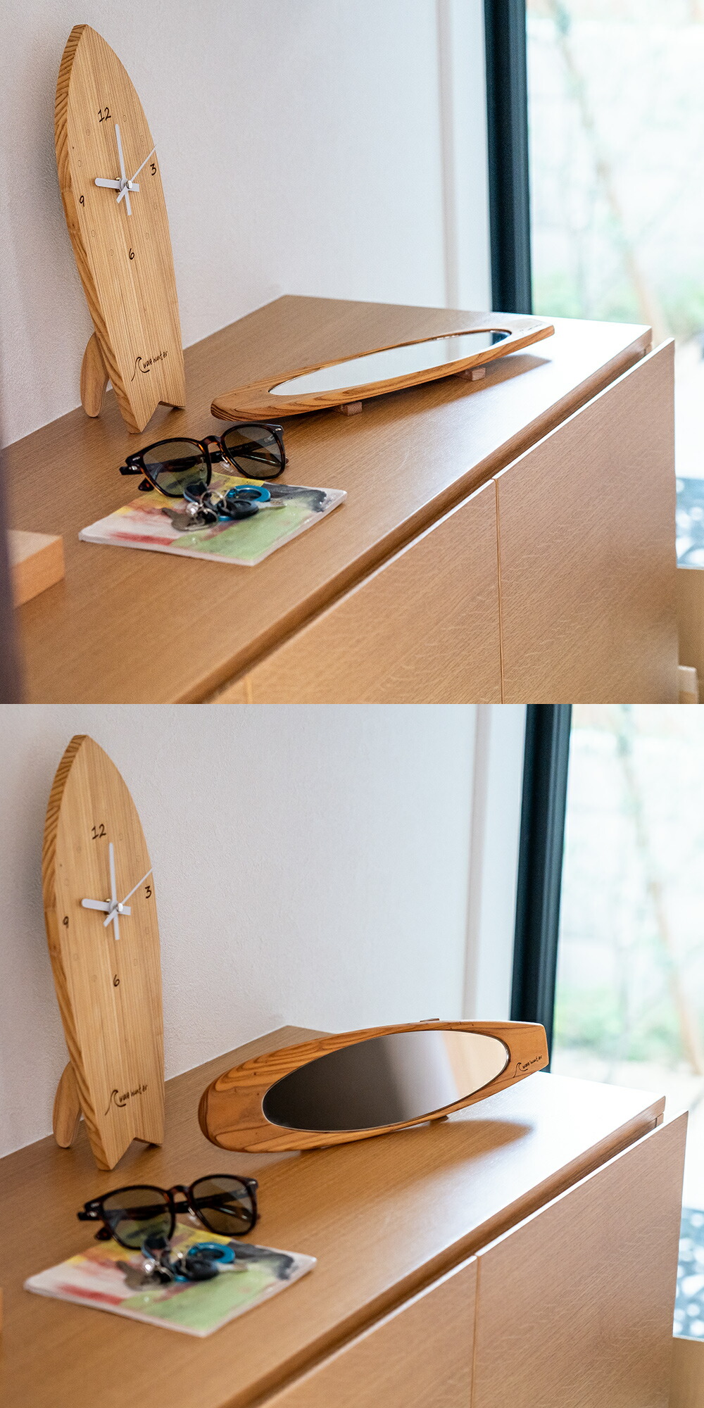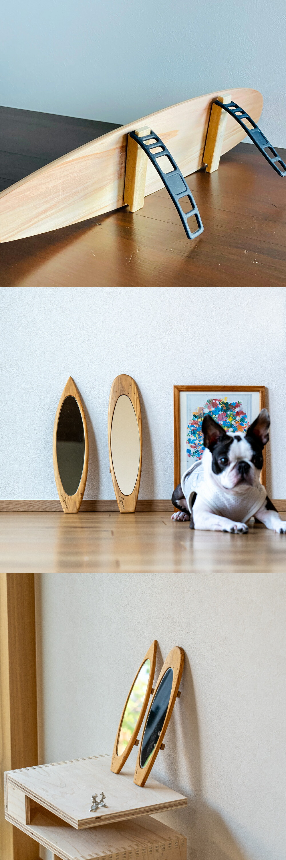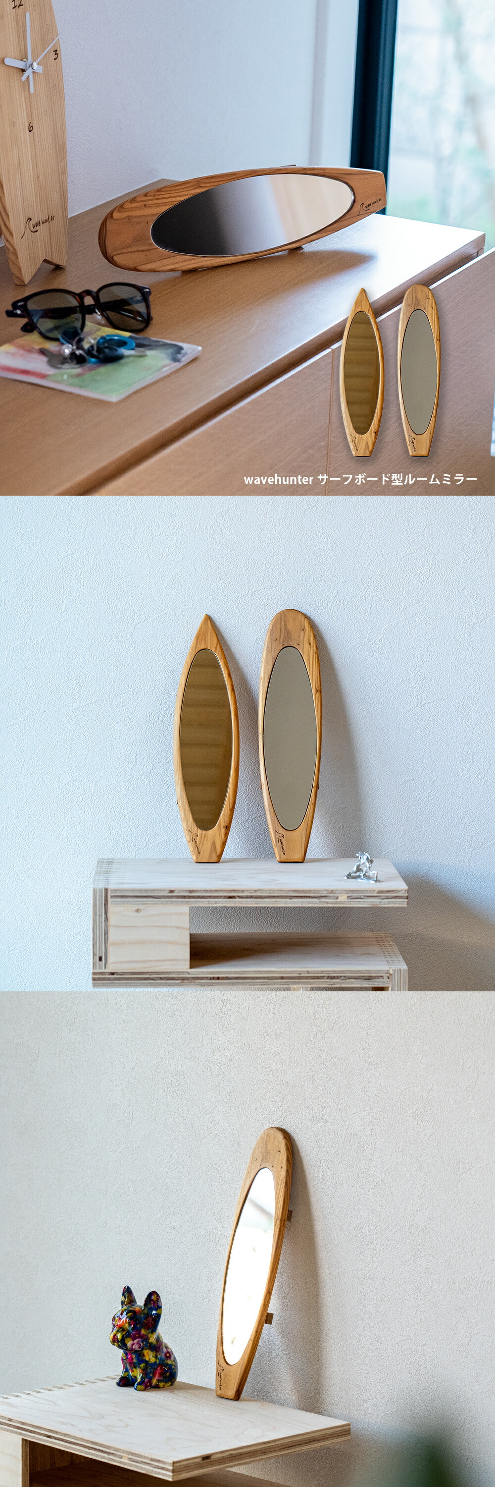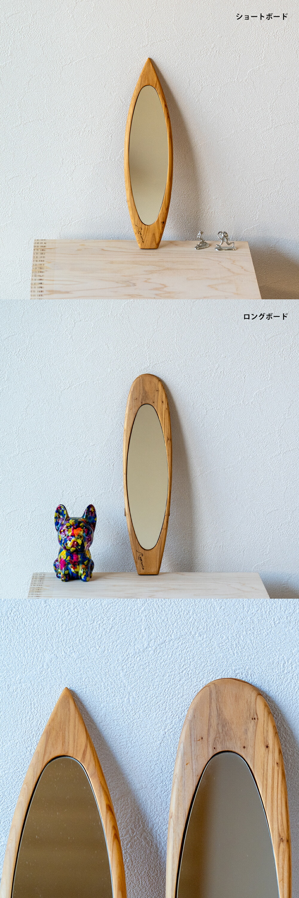 海好きな方や、サーファー、アウトドア系、旧車4WD車にピッタリなサーフボード型のルームミラーです。