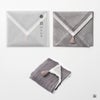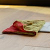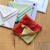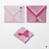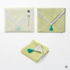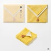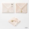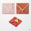 リバーシブルカラーになっていますので、その日の気分やスタイルに合わせて表面の色を選ぶのも楽しみのひとつです。 ちょっとした贈り物や御礼に、そして自分への願掛けに。 さらに縦に三つ折り、横に三つ折りすれば、手のひらに丁度収まる心地良いボリューム感です。