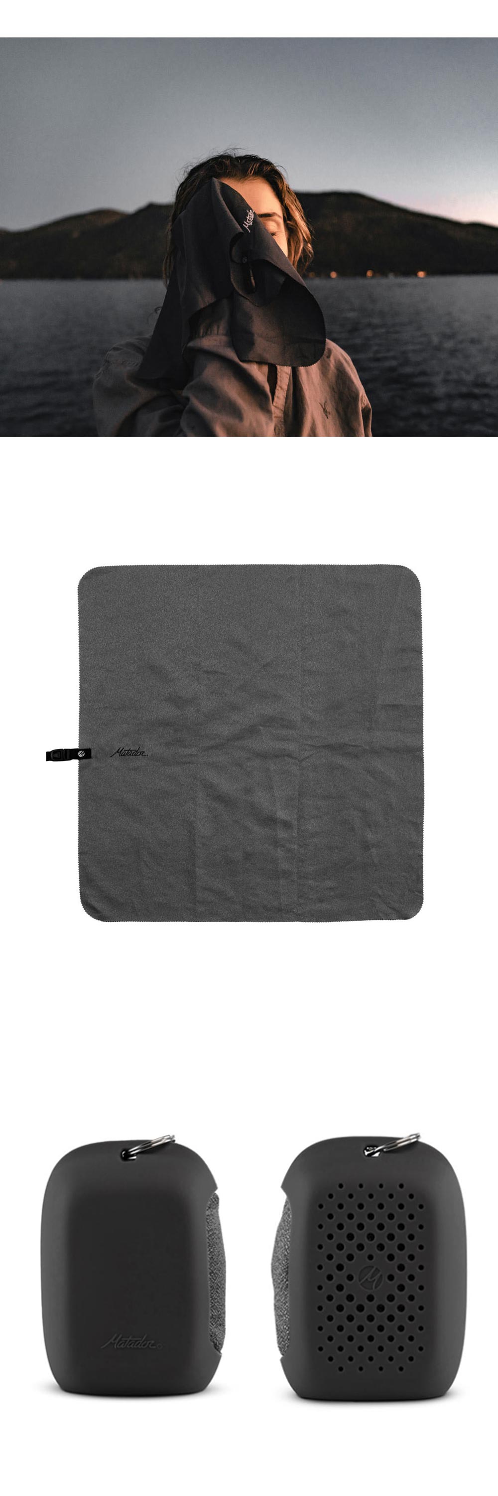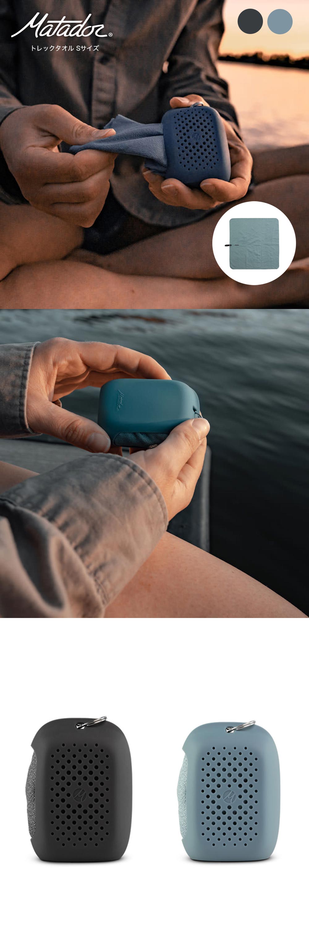 Matador マタドール ナノドライ トレックタオル Sサイズは吸水性が高く、軽量でコンパクトになる小ぶりなサイズのタオルです。 自重の2~3 倍の吸水性があり、速乾性の高いナノファイバーを使用しています。付属のシリコンケースにはカラビナが付いているので、未使用時はパックに取り付けておくことも可能です。