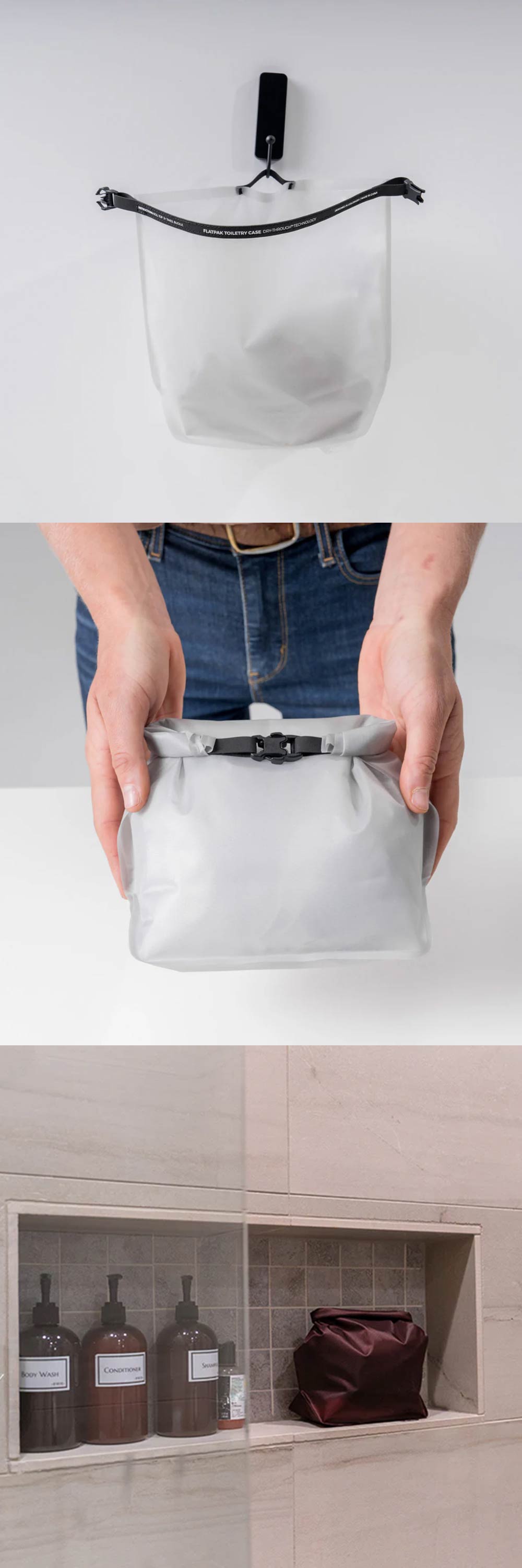 溶接構造は完全に防水性があり、ドライ・スルー テクノロジーにより、アメニティはケースを閉じたままでも蒸気が通り抜け乾燥されます。BPAおよびPVCフリー。