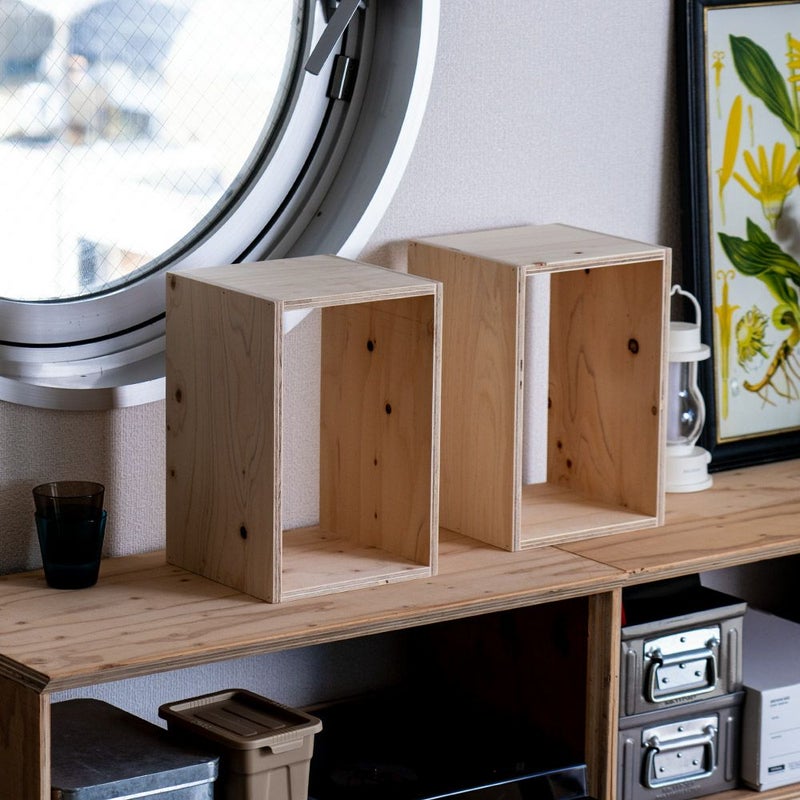 収納が欲しい場所に応じて、タテ・ヨコ自由にレイアウトできるシェルフボックス。