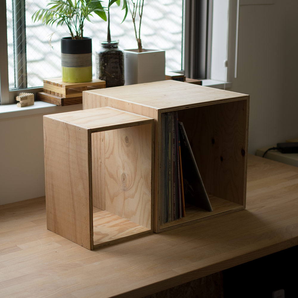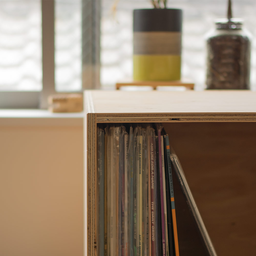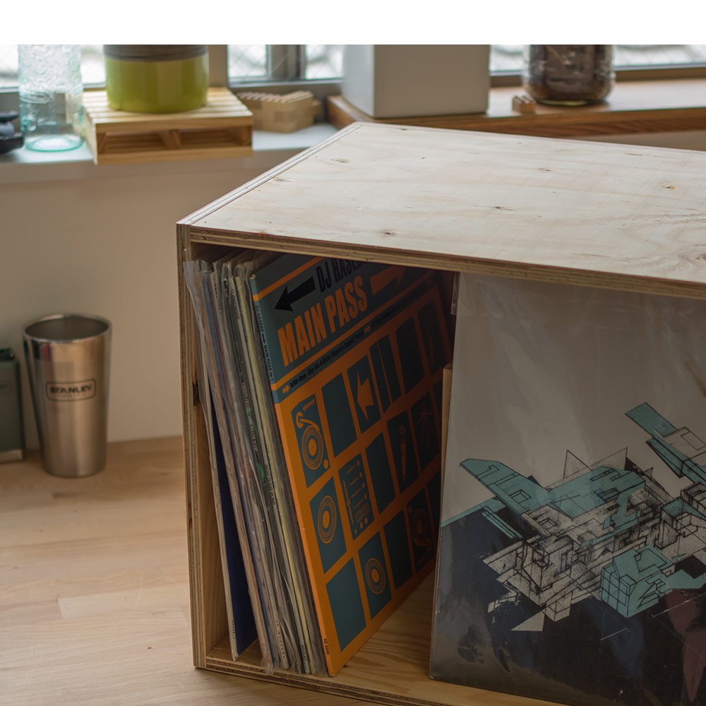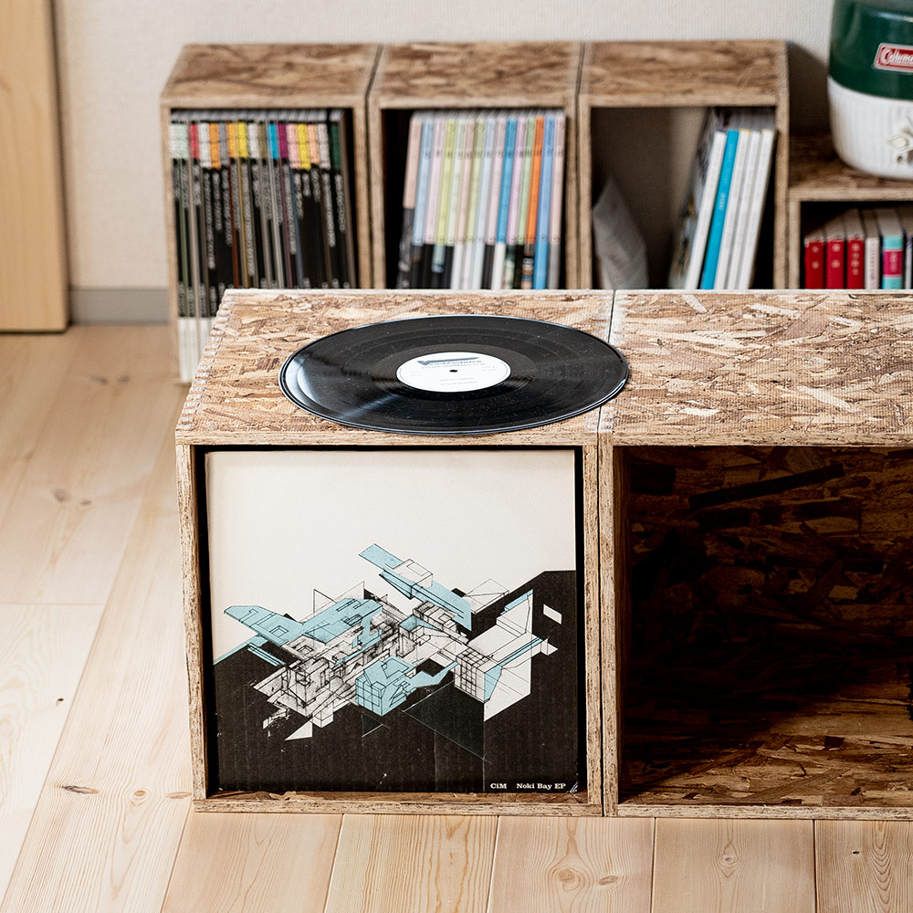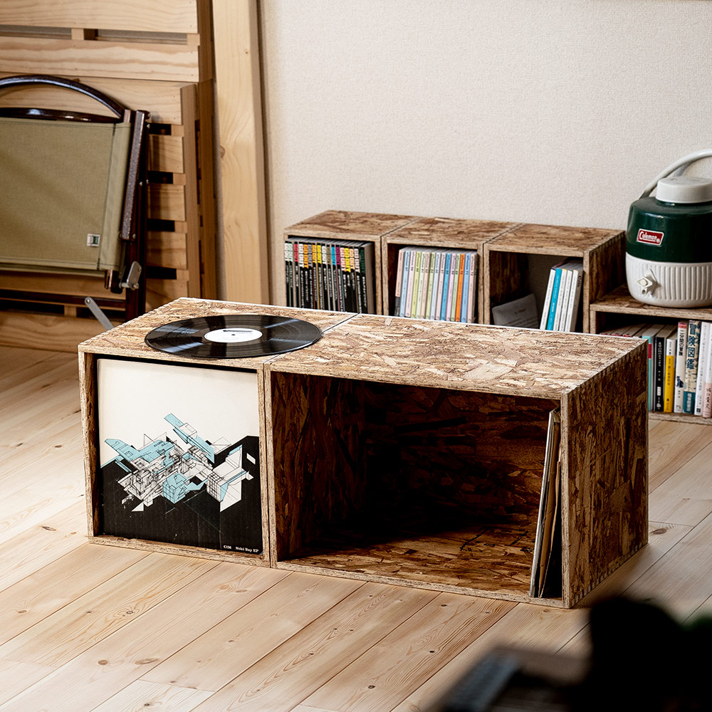お気に入りの1枚を上面に飾ってジャケットを楽しんだり、2個並べてプレーヤーを置いて自分だけの空間を省スペースで作ることができます。