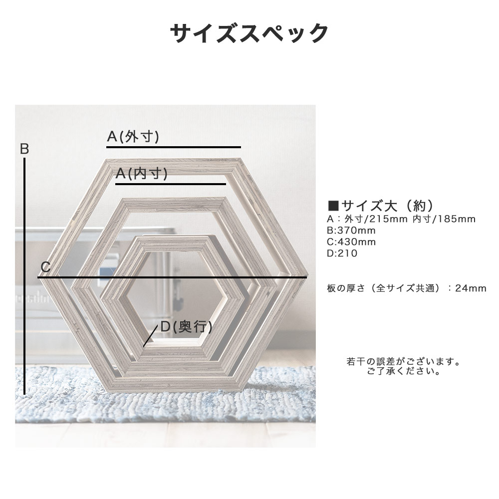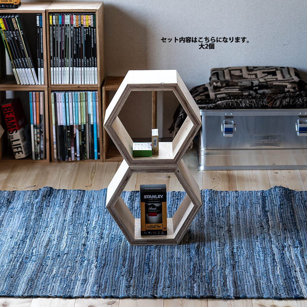 大サイズ2個セットで様々な組み合わせをお楽しみ頂けます。 家具やテーブルなど四角い形ばかりだと単調になりがちなお部屋のアクセントにもおすすめ。 六角形のシルエット入ることでリズムが生まれて、グレード感がアップすること間違いなし!!