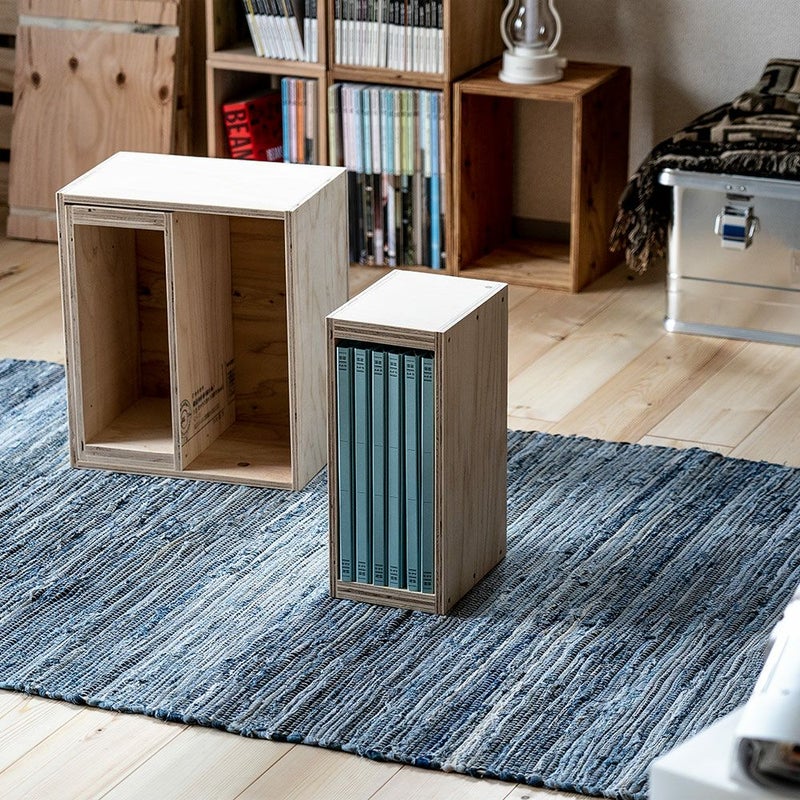 収納が欲しい場所に応じて、タテ・ヨコ自由にレイアウトできるシェルフボックス。 リビングや寝室、書斎に玄関…ラフな木の質感で家中どこでもお使いいただけます。 家具のように重くないので、移動も楽々。ひとつの用途にこだわらずライフスタイルの変化に応じて使いまわせる万能シェルフです。