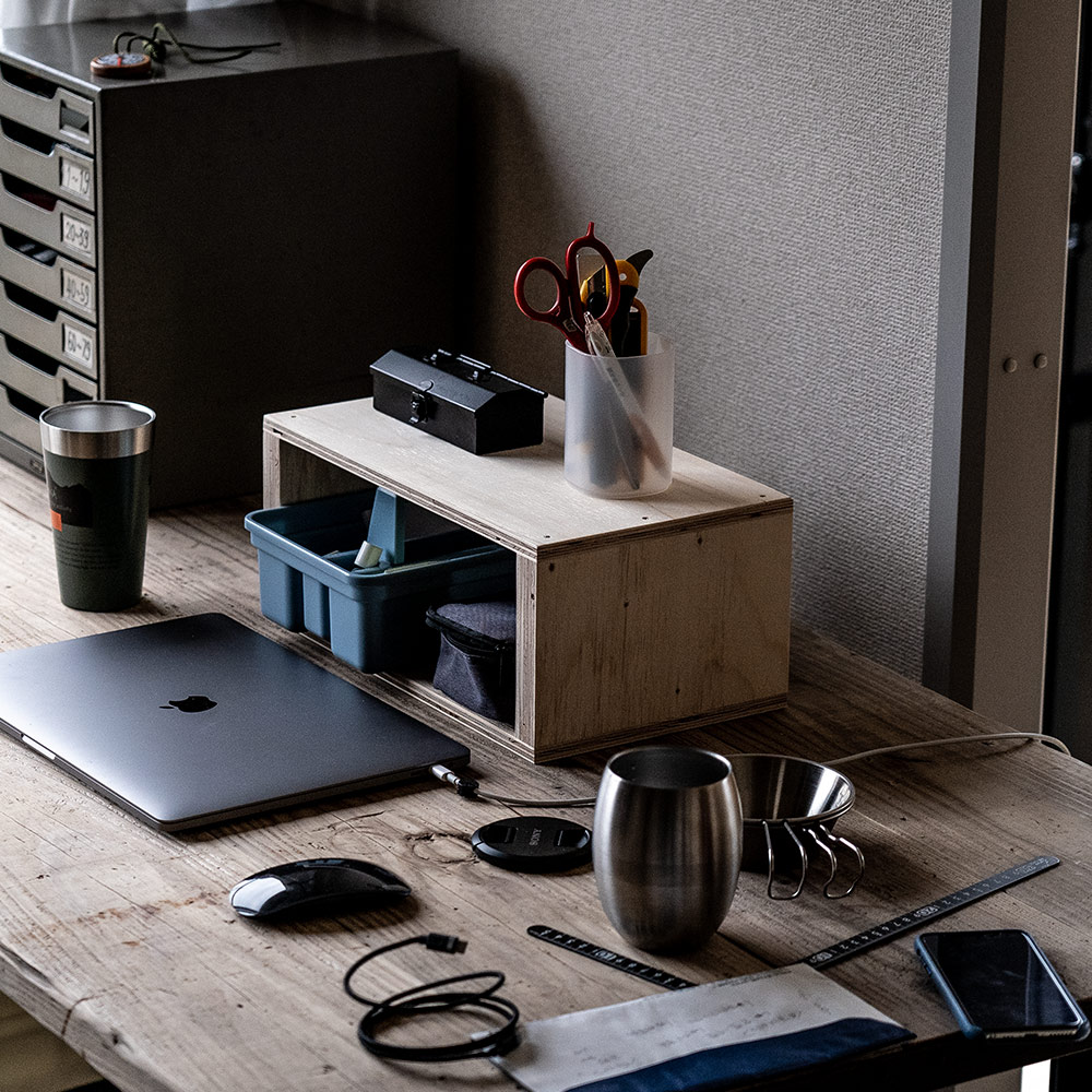 素材:ひのき合板 ※24mm部分のみ構造用合板(赤みがあります)