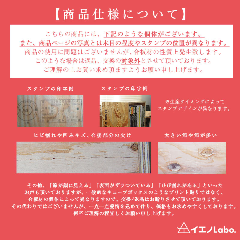素材の性質上、スタンプ印字が表面部分に入る場合や、多少の節や割れがある場合がございます。個体によって異なりますが、使用上の問題はございません。 これらの理由による返品交換はお断りさせて頂いております。何卒ご理解のほどお願い申し上げます。※店舗什器・大量注文をご検討のお客様はお気軽にご相談ください。