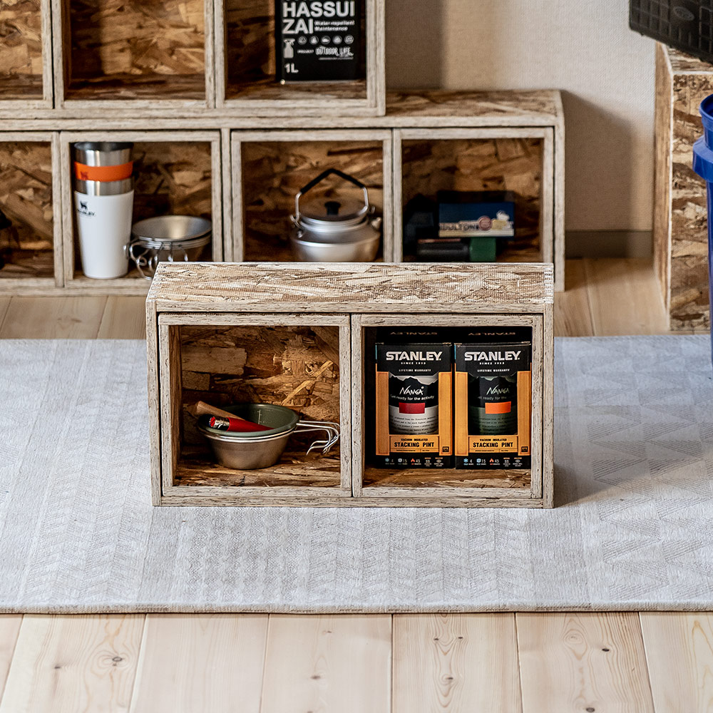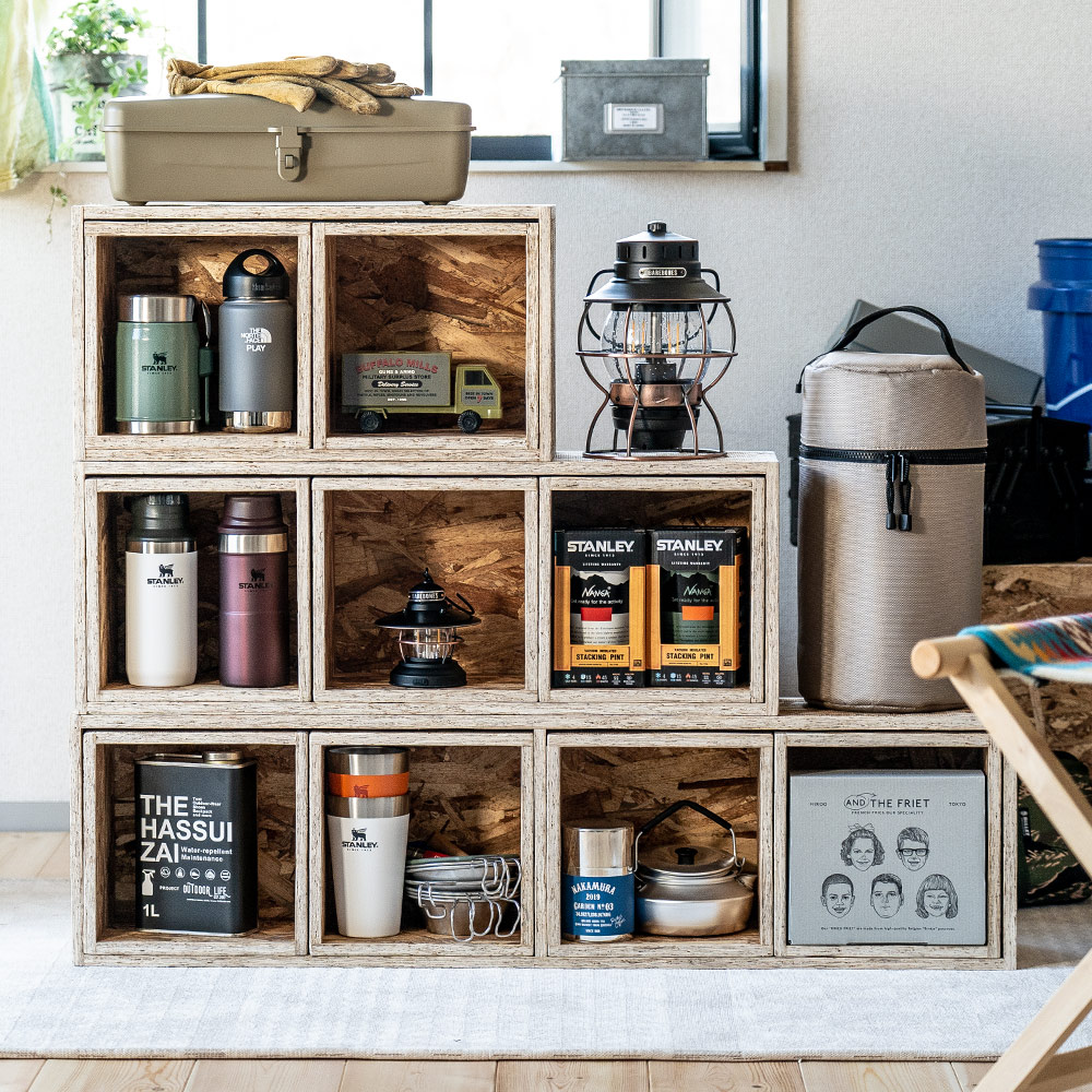 収納が欲しい場所に応じて、タテ・ヨコ自由にレイアウトできるシェルフボックス。