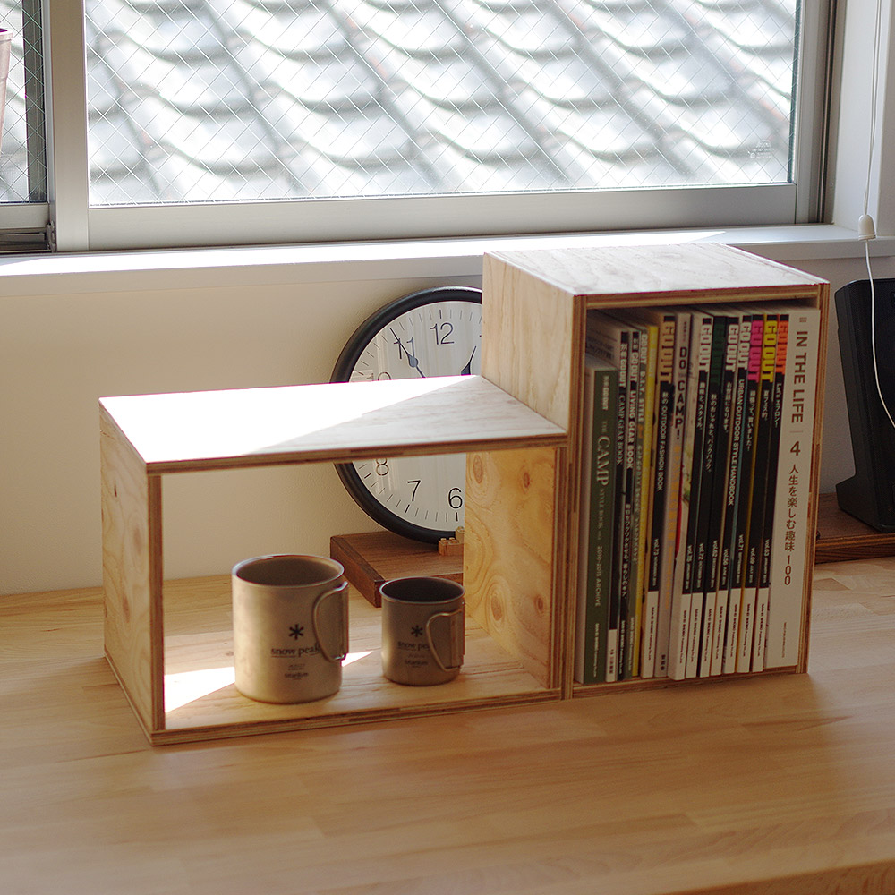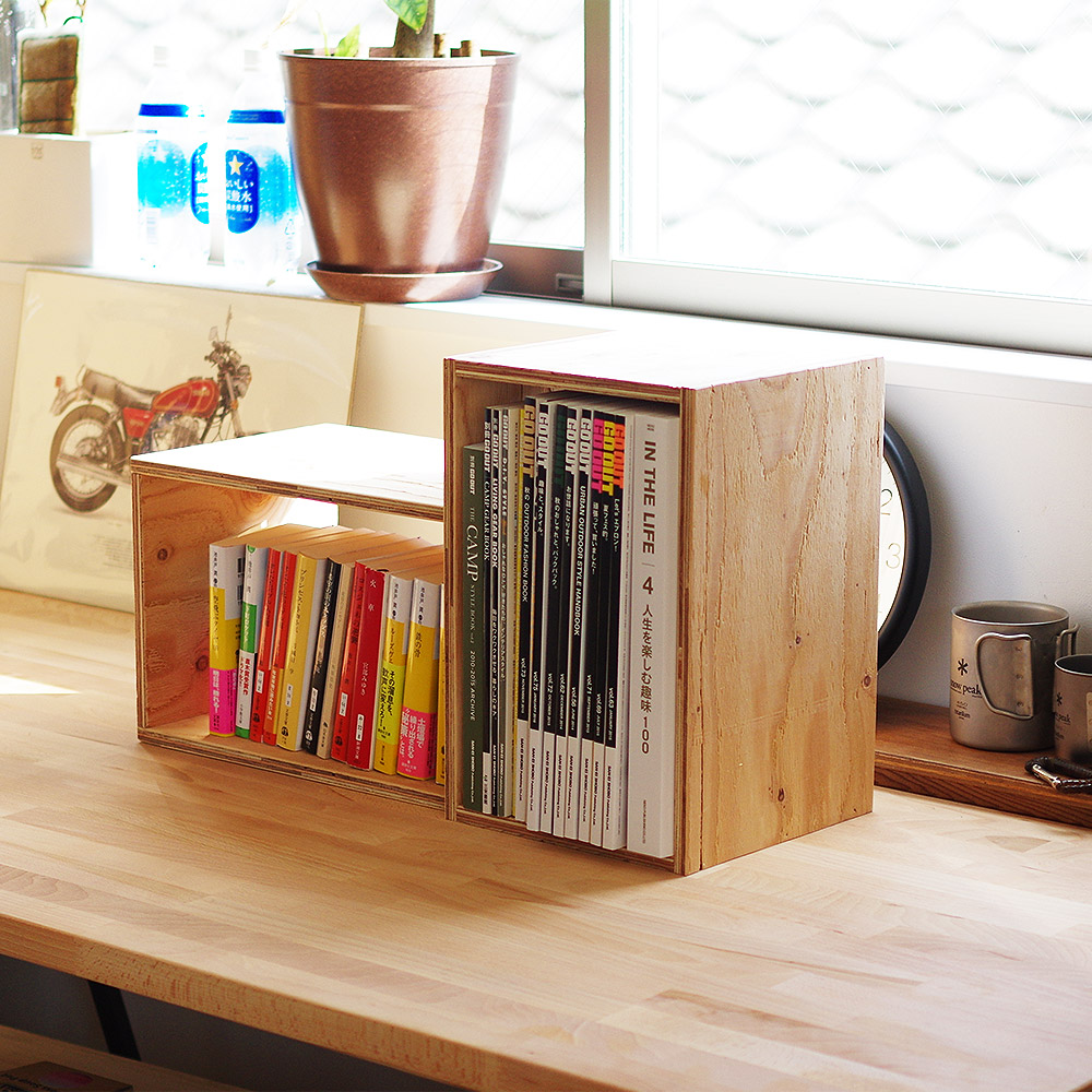 デスクや棚の上に置いてブックスタンド代わりに、キッチン周りの小物収納、ソファやベッドの横に。 ちょっとしたスペースに気軽に置けて、2,3個合わせて自由にレイアウトもお楽しみ頂けます。