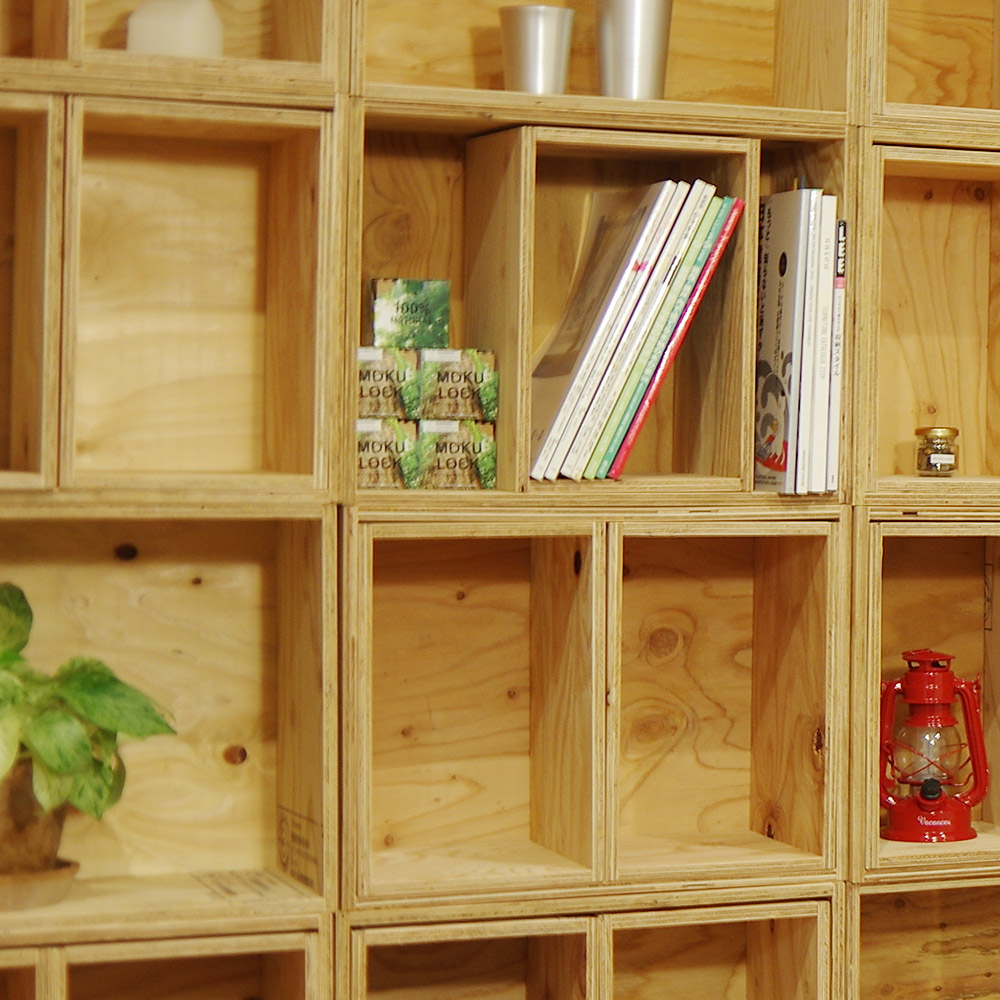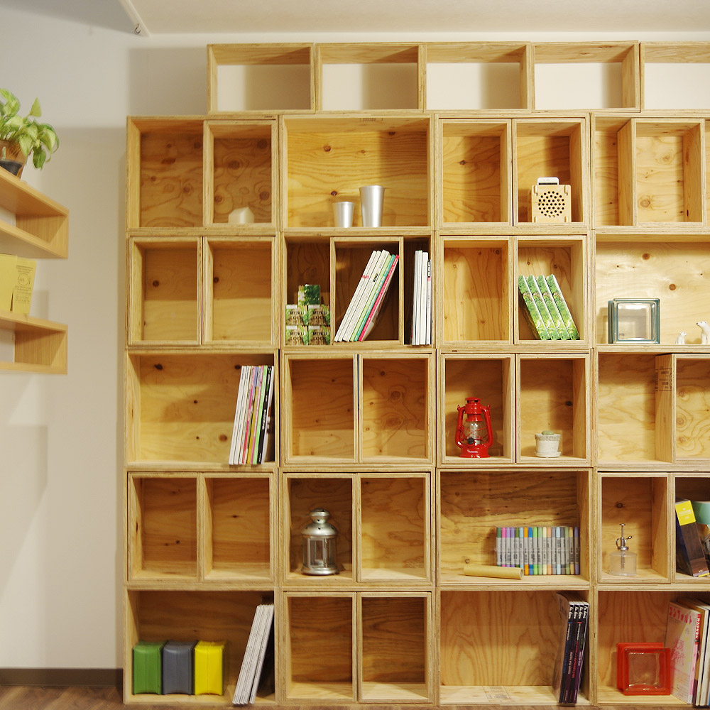 収納が欲しい場所に応じて、タテ・ヨコ自由にレイアウトできるシェルフボックス。