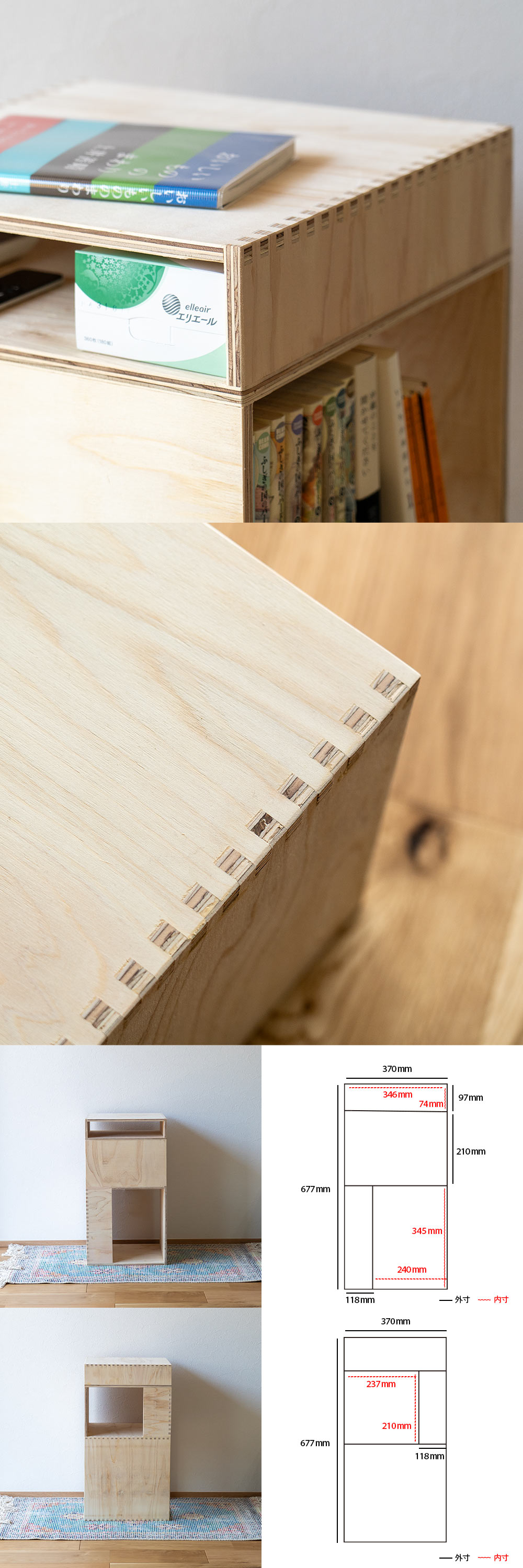 上段(浅め)・・・リモコン、ティッシュ、新聞など