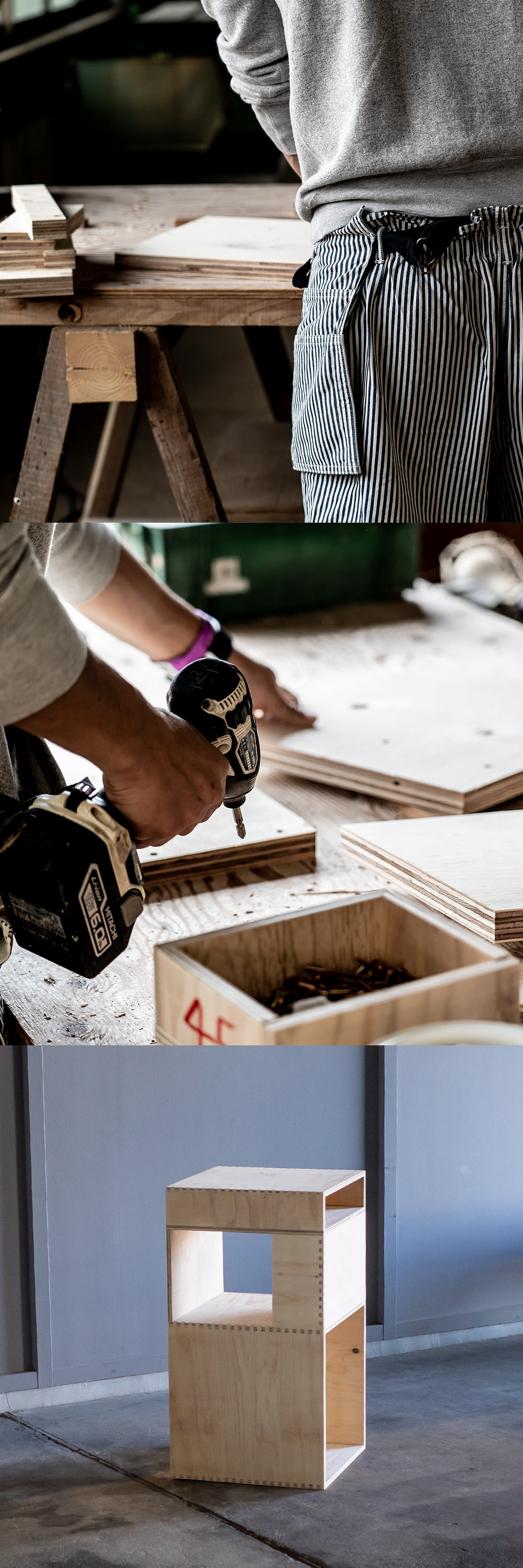 枡と同じ木の組み方で、 木に細かな凸凹を付けて、パズルのように組み上げ製品を作ります。