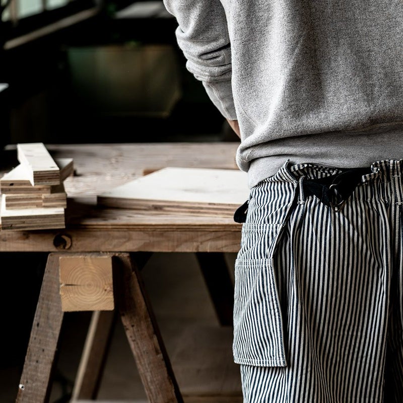「美しい濃淡の縞模様が特徴のウォルナット材。 硬めの素材のため、アラレの目、一目ずつ材に割れ目が入らないよう力加減をしながら、ゴムハンマーにて打ち込んでいます。角度は少しずつ叩きながら正確に90度を出しています。ウォルナットの深い色合いと、時間とともに風合いが増す経年変化もお楽しみいただけます。」