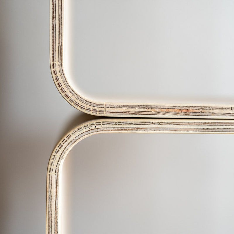 切り込みを入れて曲げるという繊細な加工で生まれる、美しいカーブ。 素材の風合いを生かしながら、空間にやわらかな印象を与えてくれます。