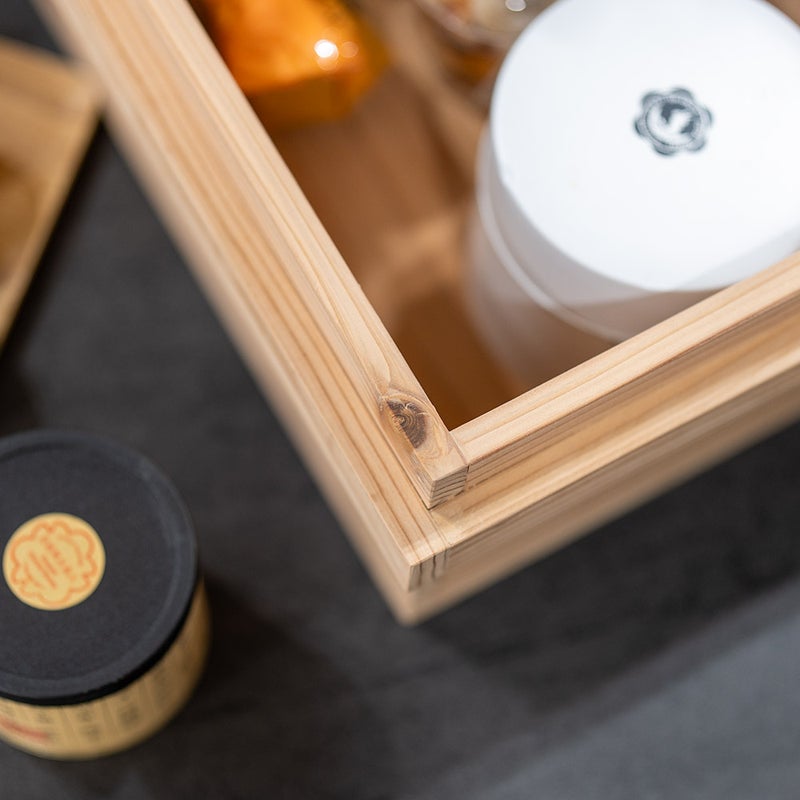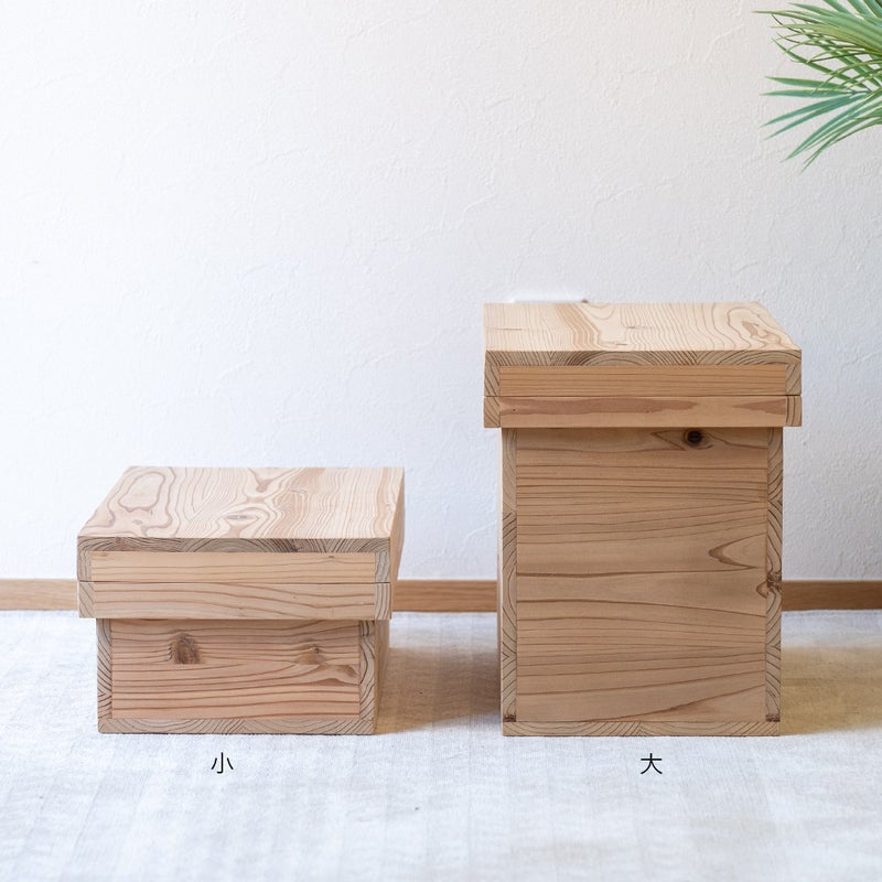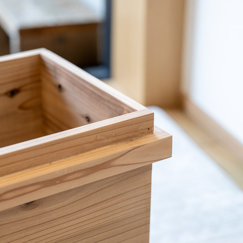 「蓋があったらもっと使いやすい」というお客様の声をきっかけに生まれたのが、蓋付き杉箱です。