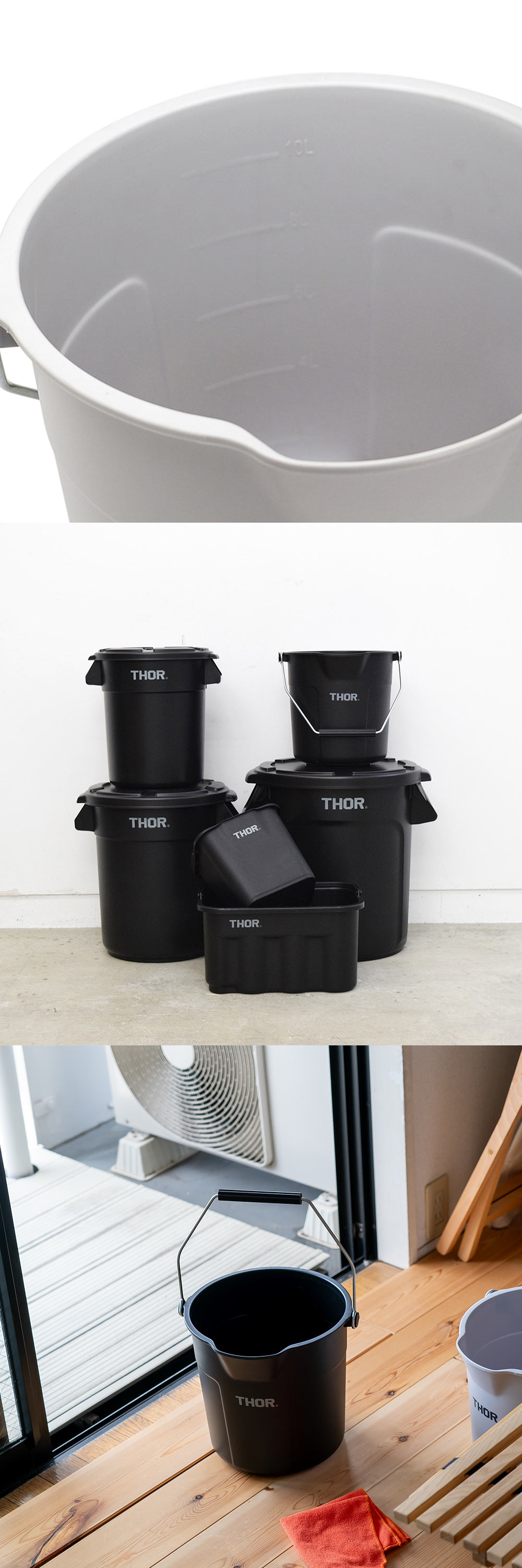 タフに使える目盛り付き10L大型バケツ DETAIL|THOR Round Bucket DC 10L