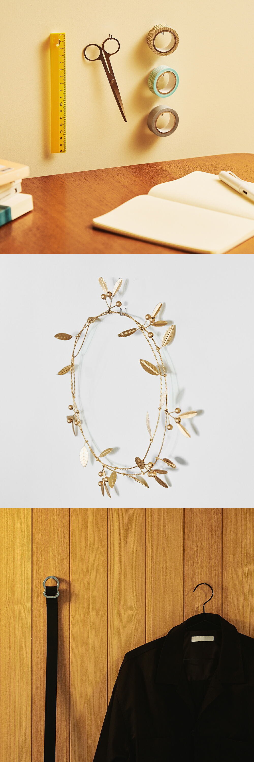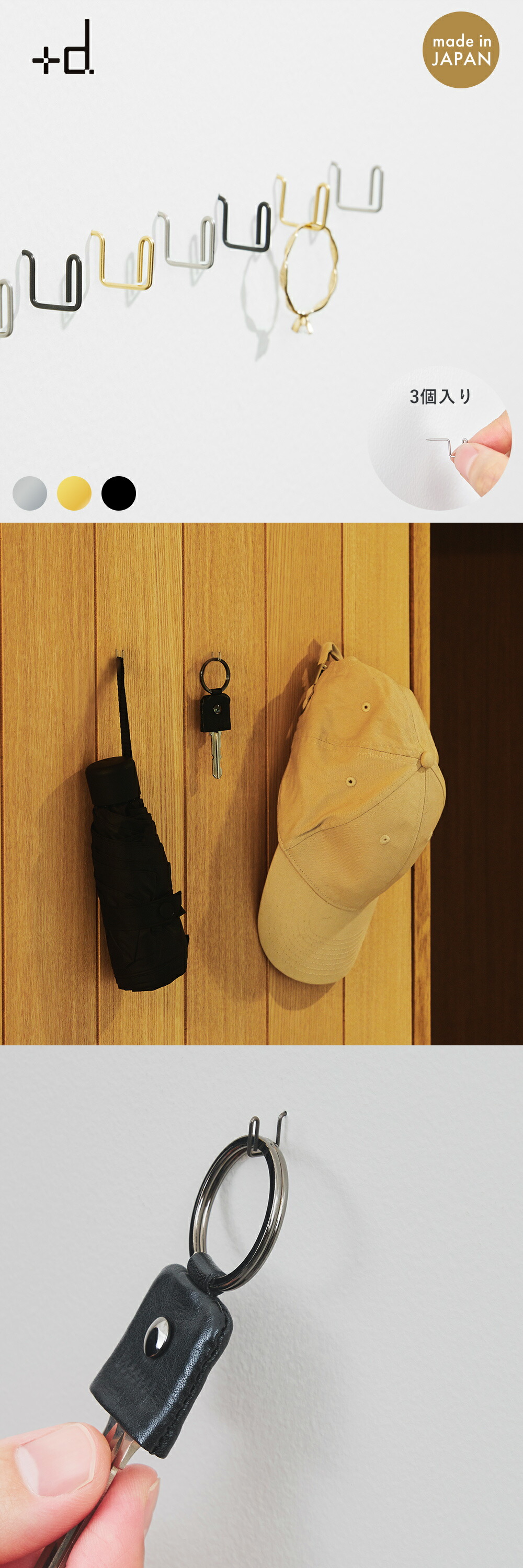 主張を控えたデザインと、暮らしに溶け込む3つのカラー展開。このステンレスフックは、いつもの日常を支える名脇役です。使う場所を選ばず、傷つけにくく、見た目にもやさしい。