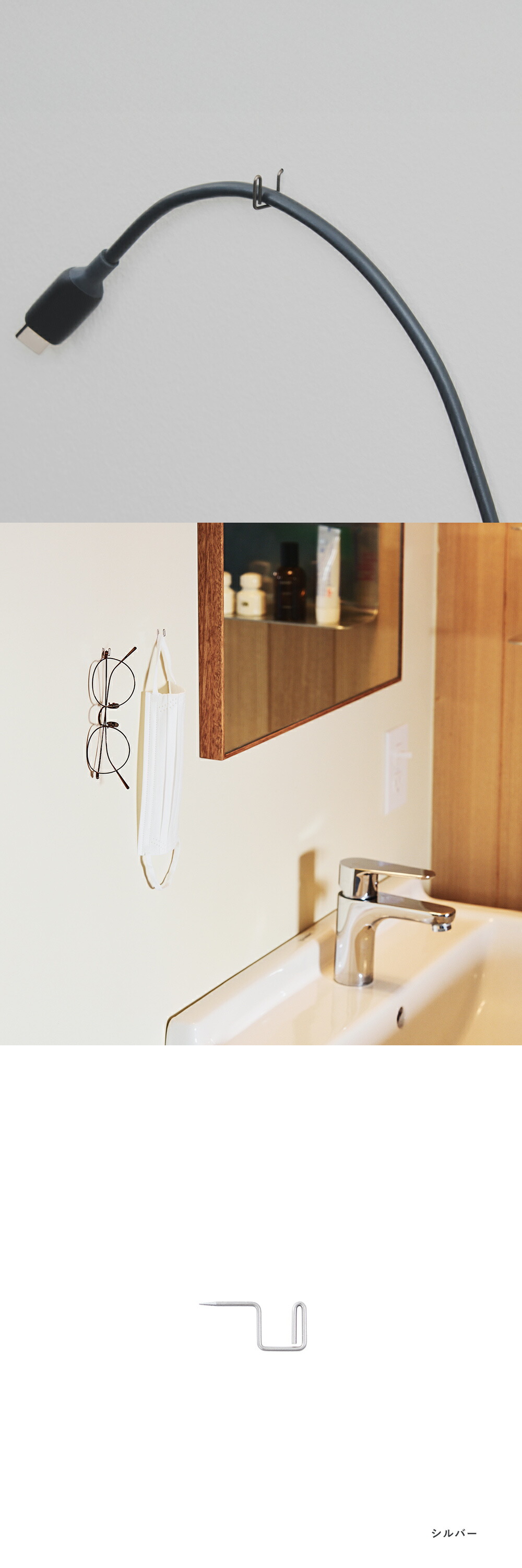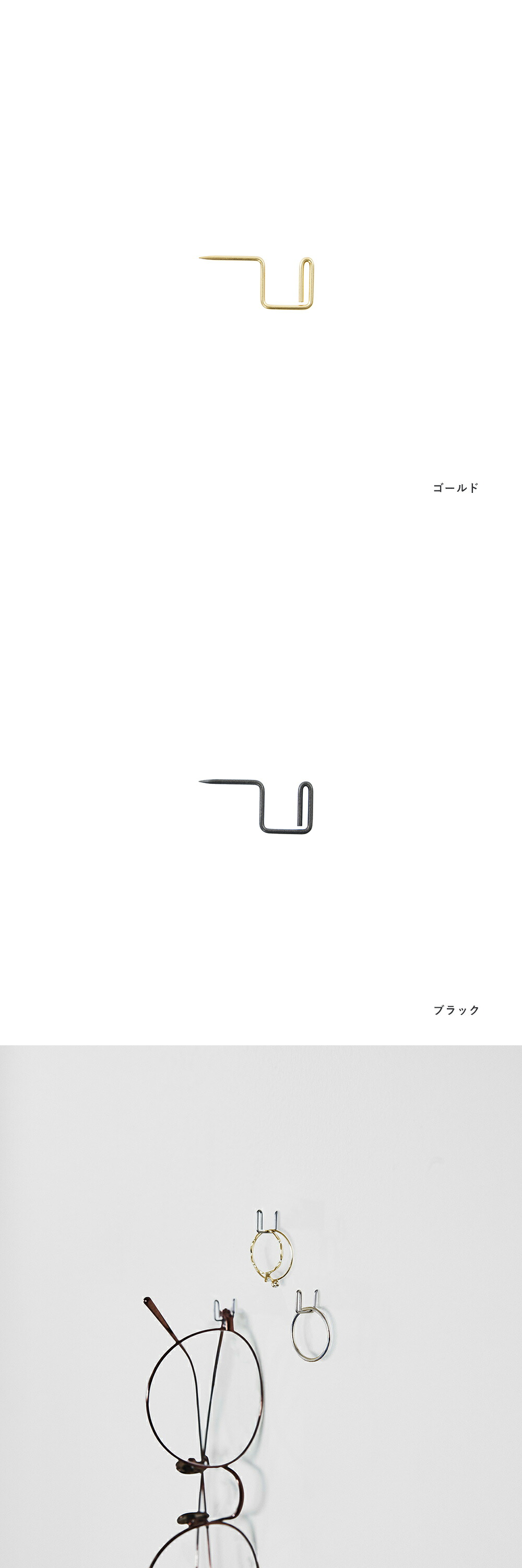 カラーはシルバー・ゴールド・ブラックの3色をご用意。高強度のバネ用ステンレス鋼線を使用しており、華奢な見た目ながら約1kgの重さまでしっかり支えられる、頼もしい存在です。