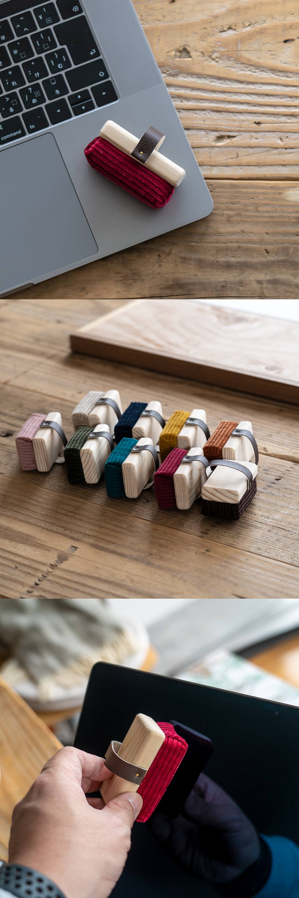 材質:木部=天然木、布部=コーデュロイ、ベルト部=合成皮革