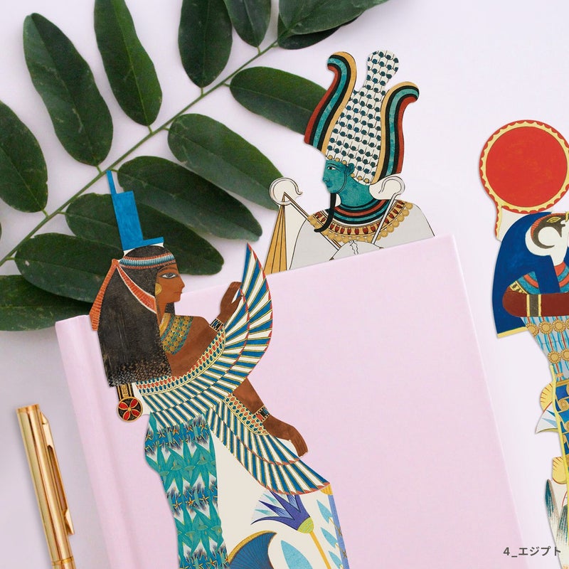 オシリス、ホルス、ラーなど象徴的な神々が描かれ、神秘的な古代文明の世界観を感じられます。