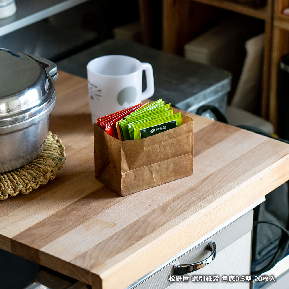 耐水性と強度にすぐれたペーパーバッグ 松野屋|蝋引紙袋 角底0.5型 20枚入