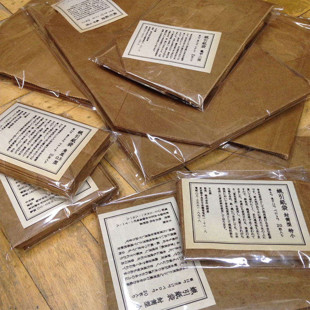 食品包装用としてご利用頂ける安全な紙袋です。耐水性があり水に濡れたり、氷の上に置いていても破れにくく仕様です。通気性もあるので、鮮魚店や惣菜店などで永く使われてきました。米袋にも使用される強度のある「重包装紙」を使用し、見落とされがちな糊も含め、紙・蝋につきましても公的機関において食品包装用として規格試験を通過した原材料を使用。昭和20年から続く小さな町工場で作られています。