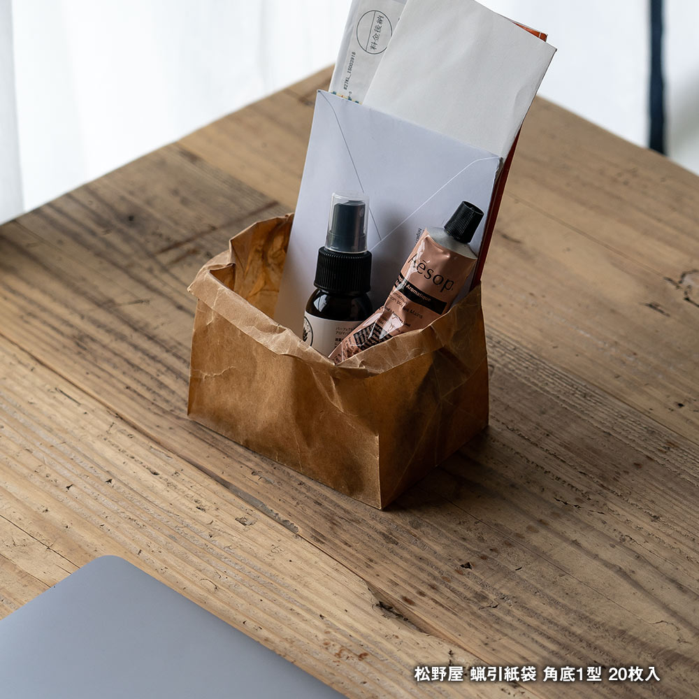 耐水性と強度にすぐれたペーパーバッグ 松野屋|蝋引紙袋 角底1型 20枚入