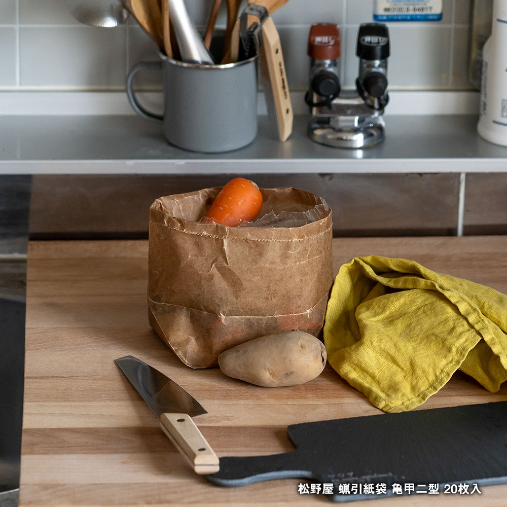 耐水性と強度にすぐれたペーパーバッグ 松野屋|蝋引紙袋 亀甲二型 20枚入
